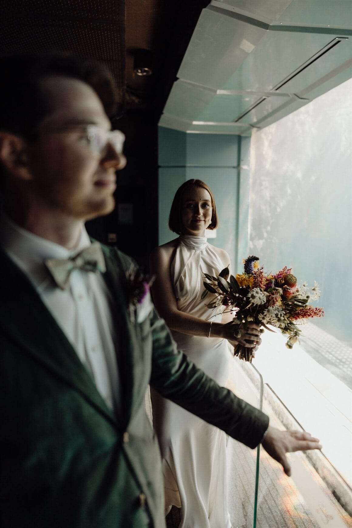 LITTLE LOL “Yanni’s glasses broke at 9 am on the day, which caused a bit of panic. Emergency fix at the optometrist, and all was saved. Also, being at the zoo, there were some really loud bird noises during our vows, which we had to embrace.”