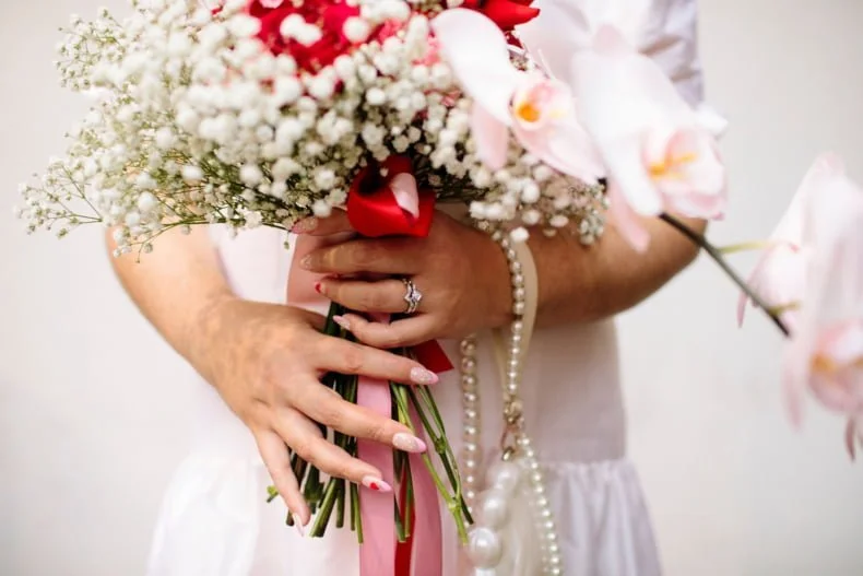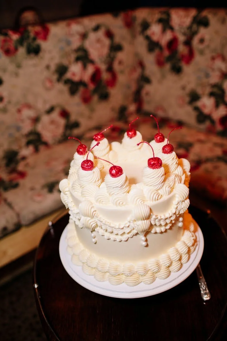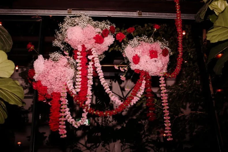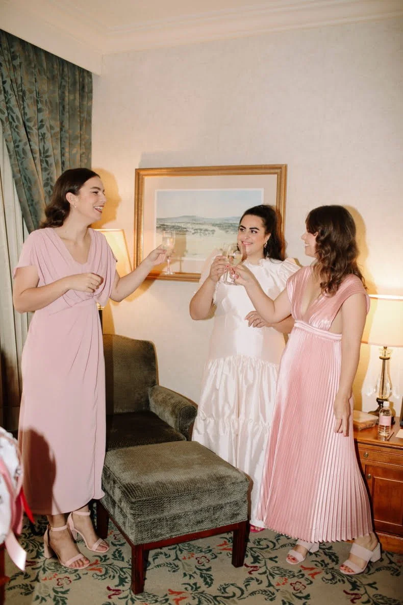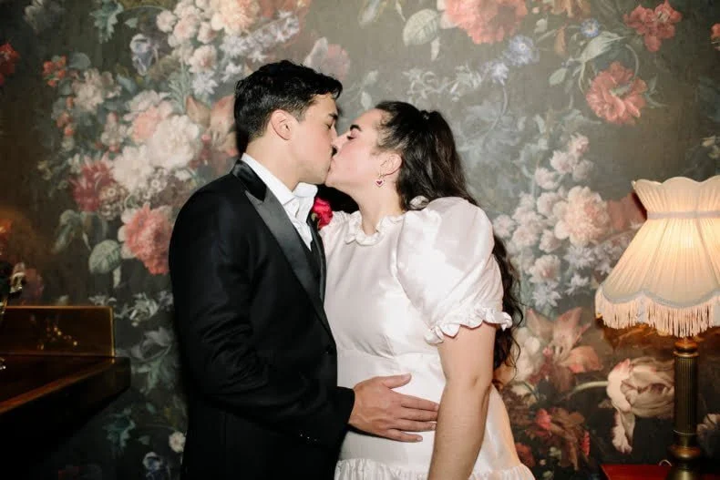 THE INSPO “We decided on our colour scheme first and everything else fell into place. We love pink and red together, so Bloom Boy was a perfect fit for our vision. We liked the idea of a low-key cheesy prom feel – from the dresses and suits to the cake and flowers, we’re so happy with how everything turned out.”