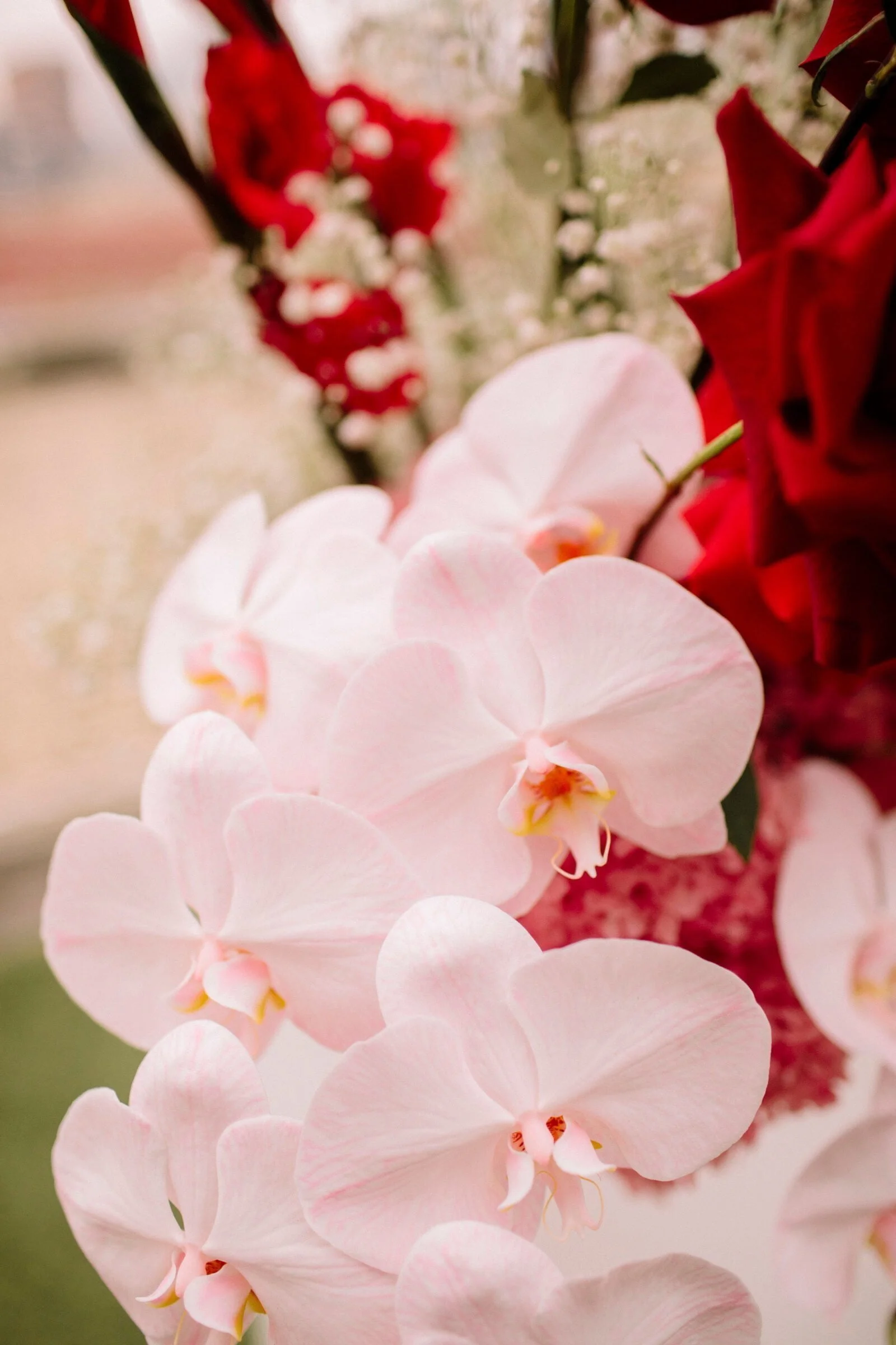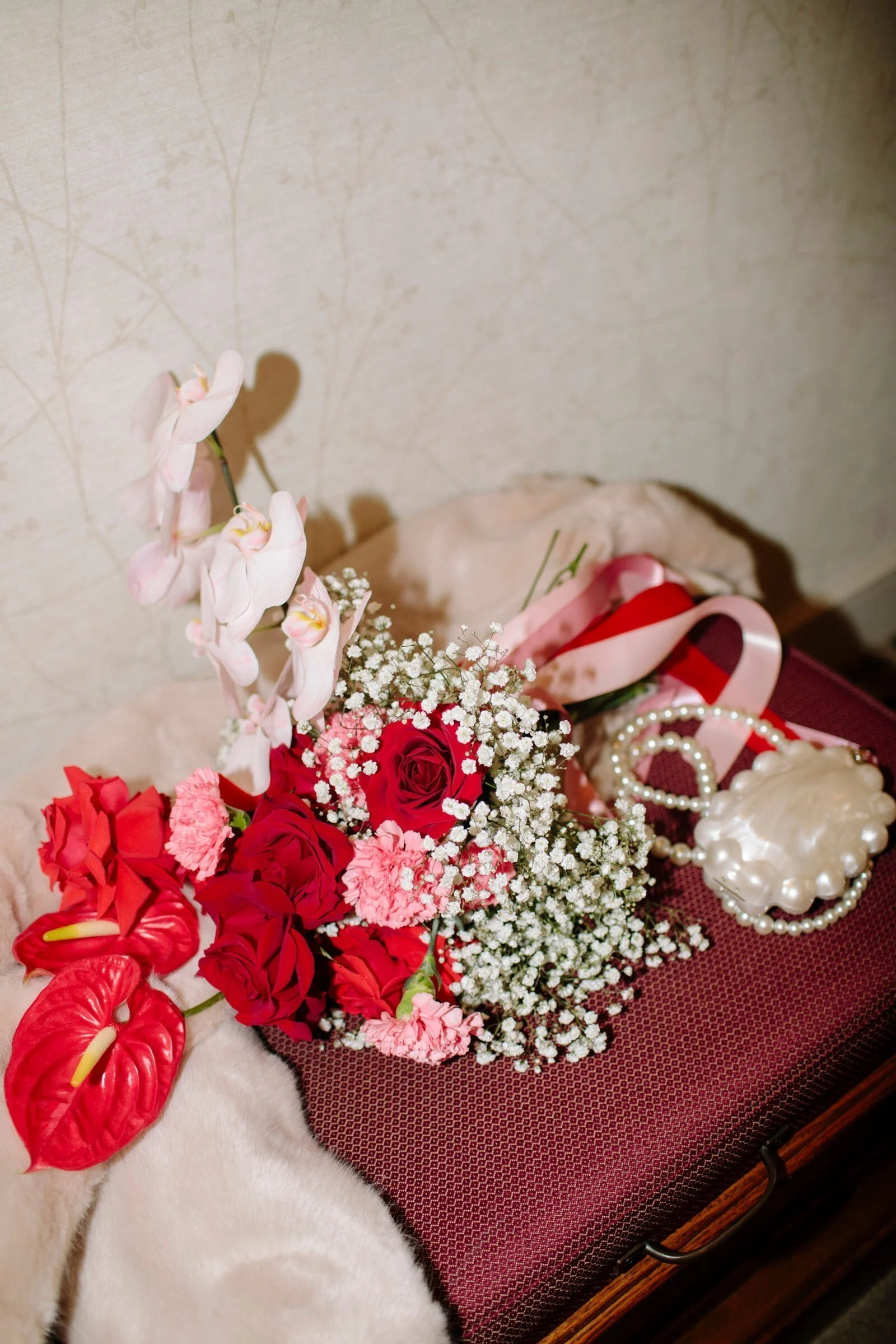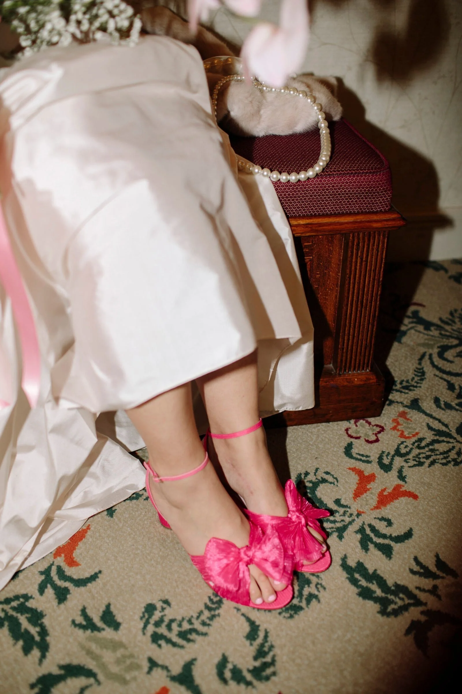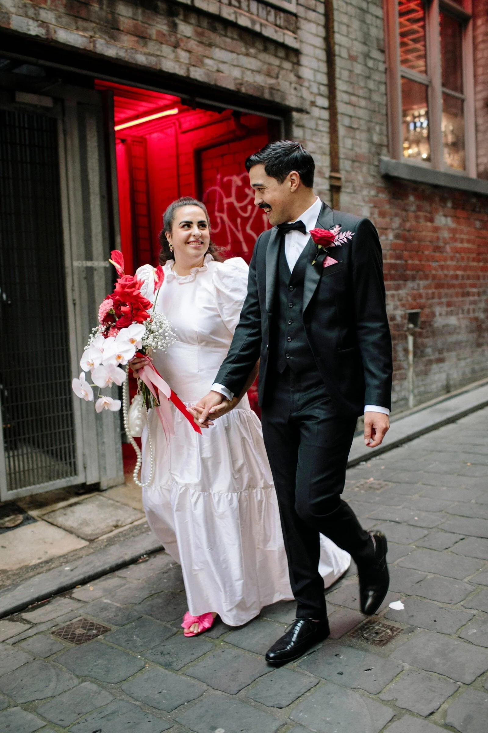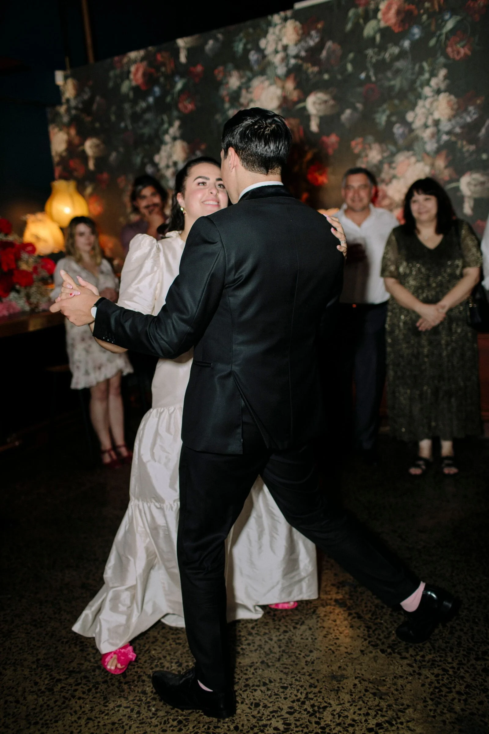 THE INSPO “We decided on our colour scheme first and everything else fell into place. We love pink and red together, so Bloom Boy was a perfect fit for our vision. We liked the idea of a low-key cheesy prom feel – from the dresses and suits to the cake and flowers, we’re so happy with how everything turned out.”