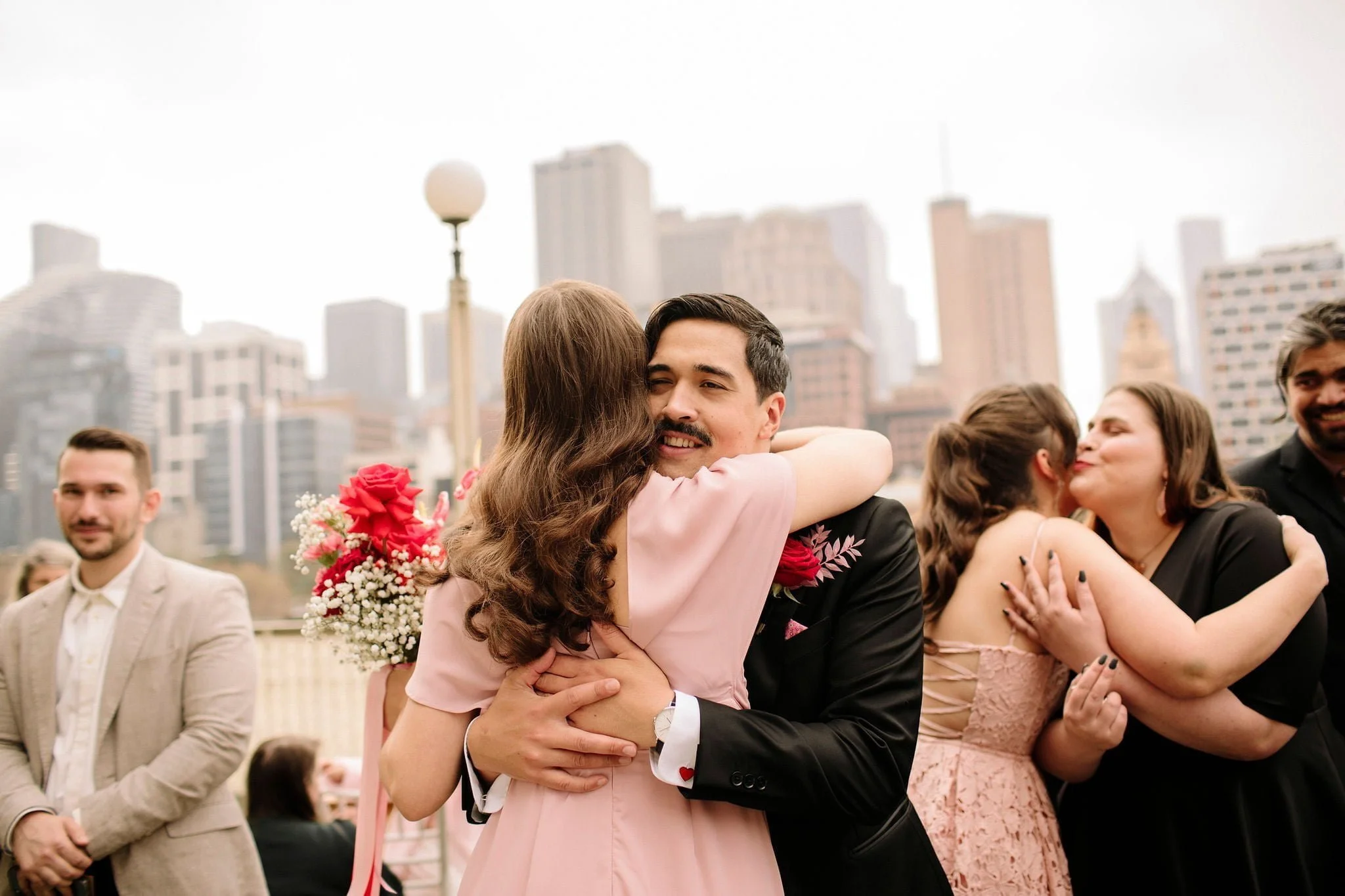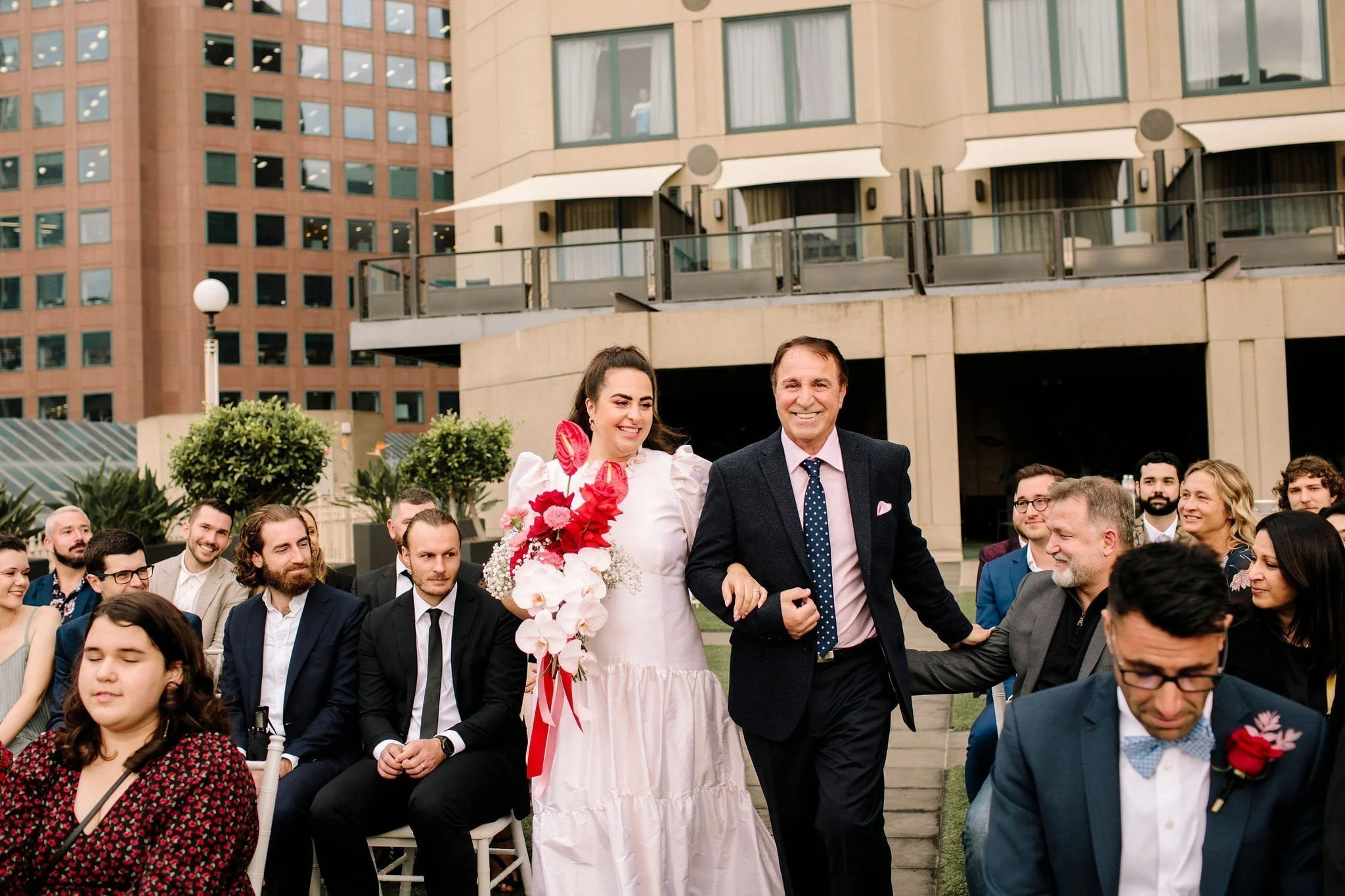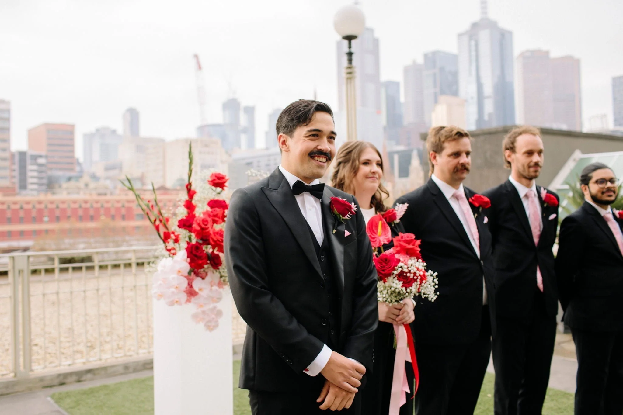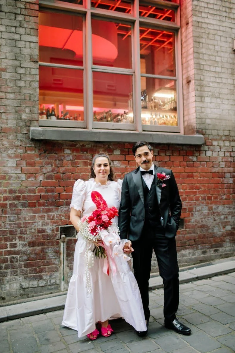 MEMORABLE MOMENT “Like every Melbourne couple planning an outdoor wedding, we worried about the weather. The forecast was for rain, but how much? The Langham rooftop has no weather protection, and we were pretty stressed the day before the ceremony. On the day, it was pretty cloudy. Moments before the music played and Zeena walked out, the skies cleared, and the sun shone out. It was amazing, and honestly a little cliché. We laughed about it at the time, but it was such a special, beautiful moment.”