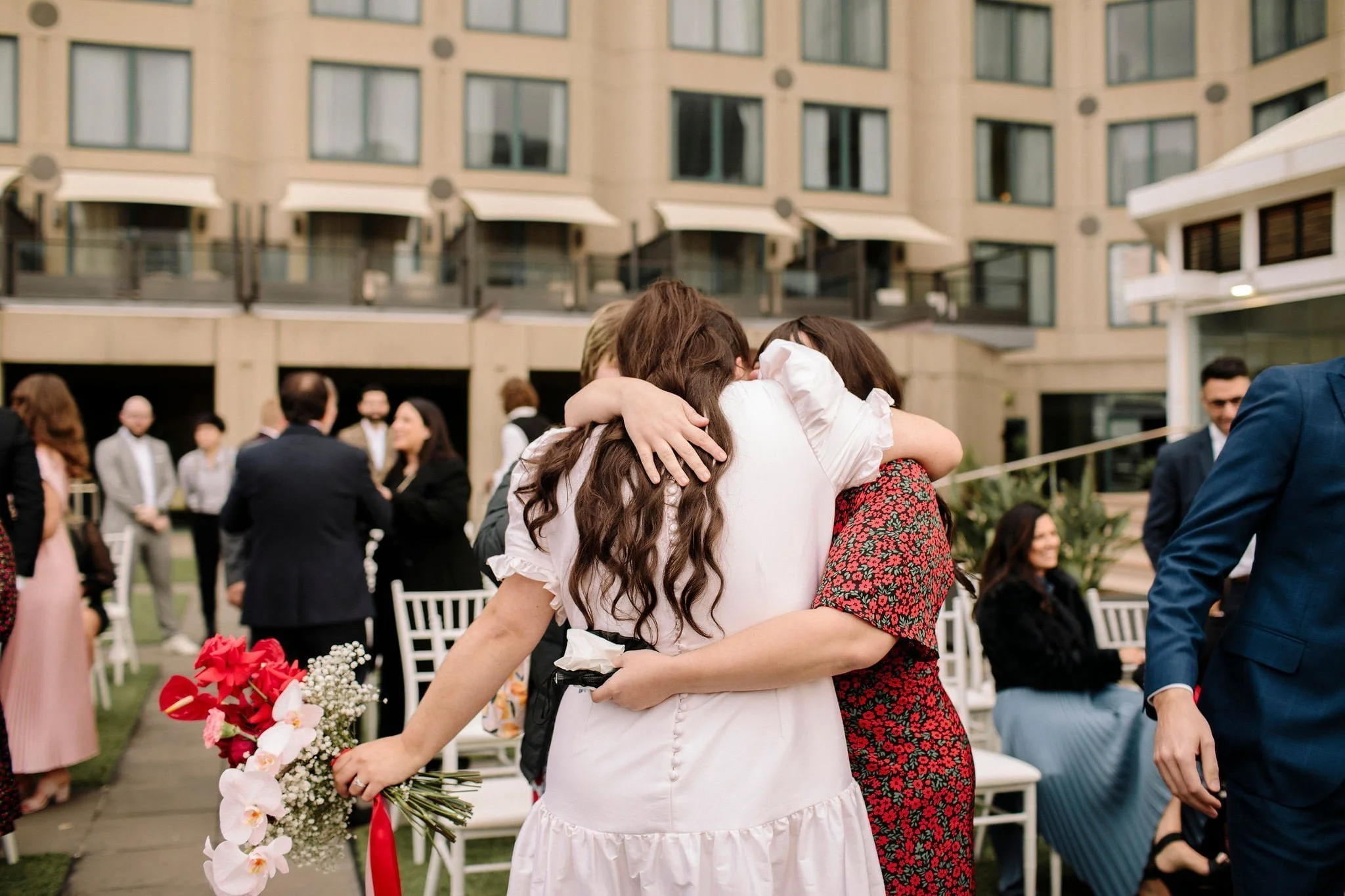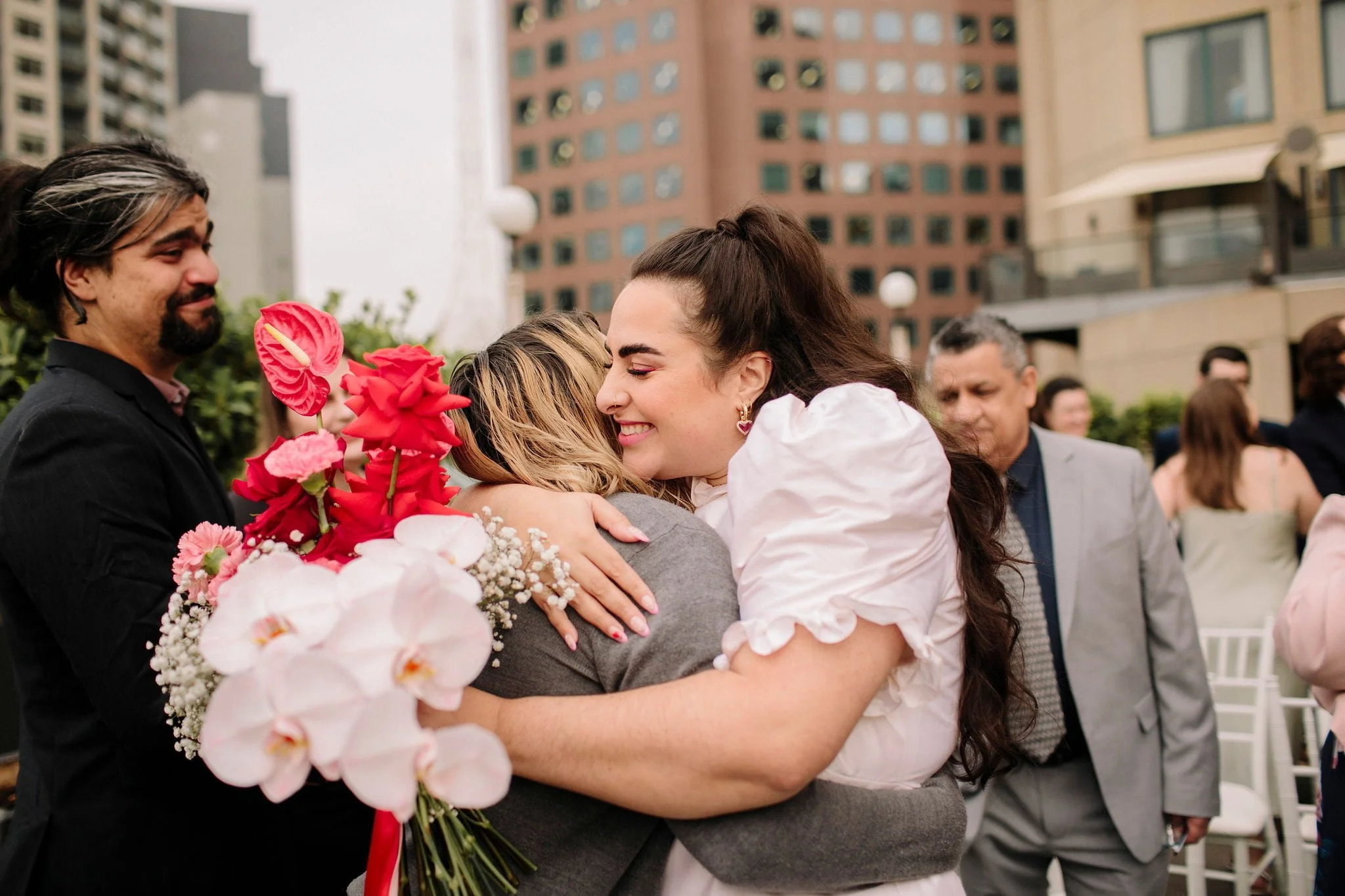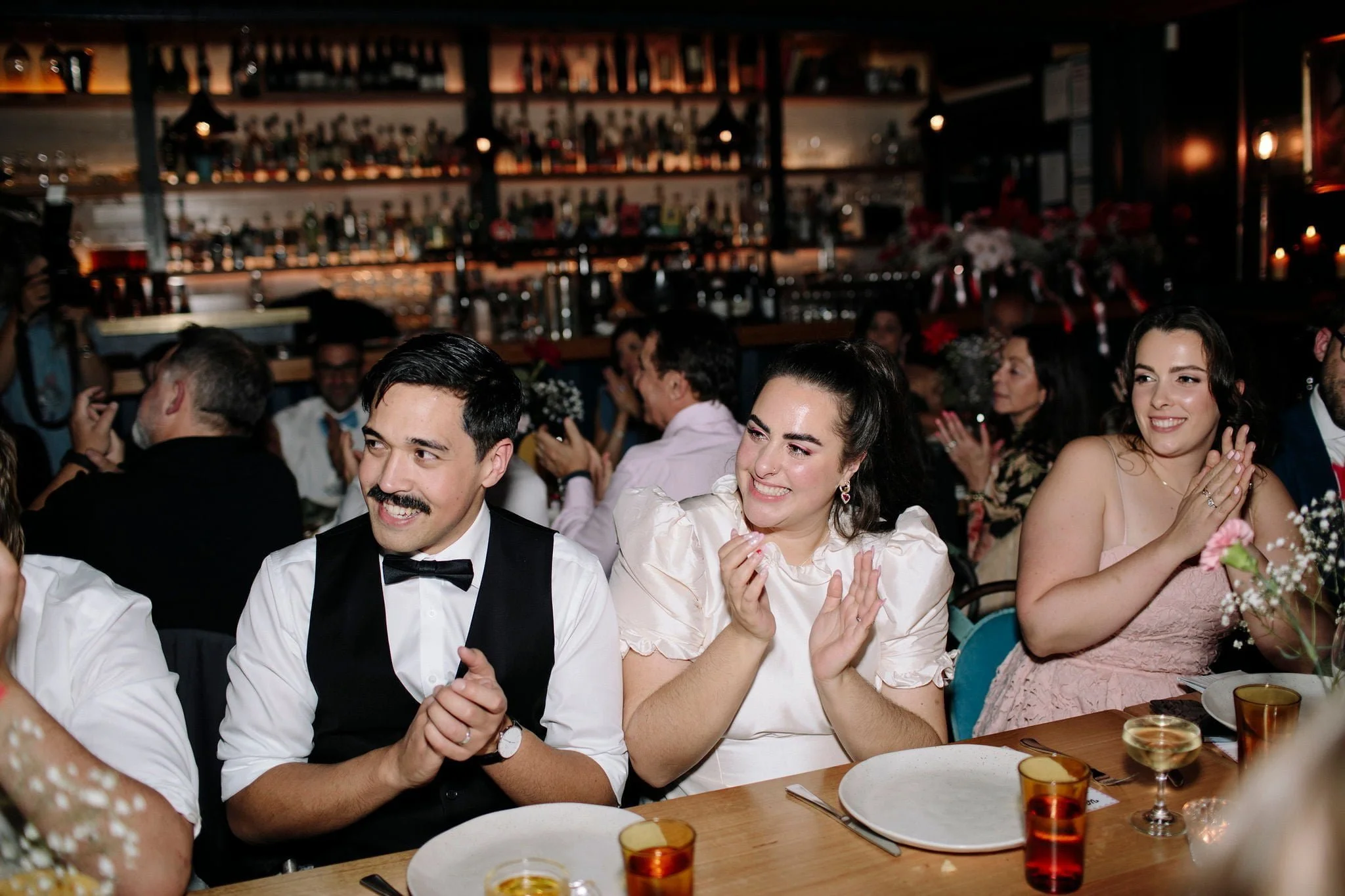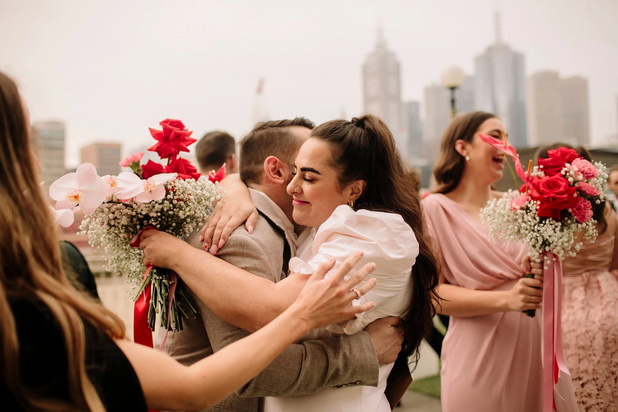 MEMORABLE MOMENT “Like every Melbourne couple planning an outdoor wedding, we worried about the weather. The forecast was for rain, but how much? The Langham rooftop has no weather protection, and we were pretty stressed the day before the ceremony. On the day, it was pretty cloudy. Moments before the music played and Zeena walked out, the skies cleared, and the sun shone out. It was amazing, and honestly a little cliché. We laughed about it at the time, but it was such a special, beautiful moment.”