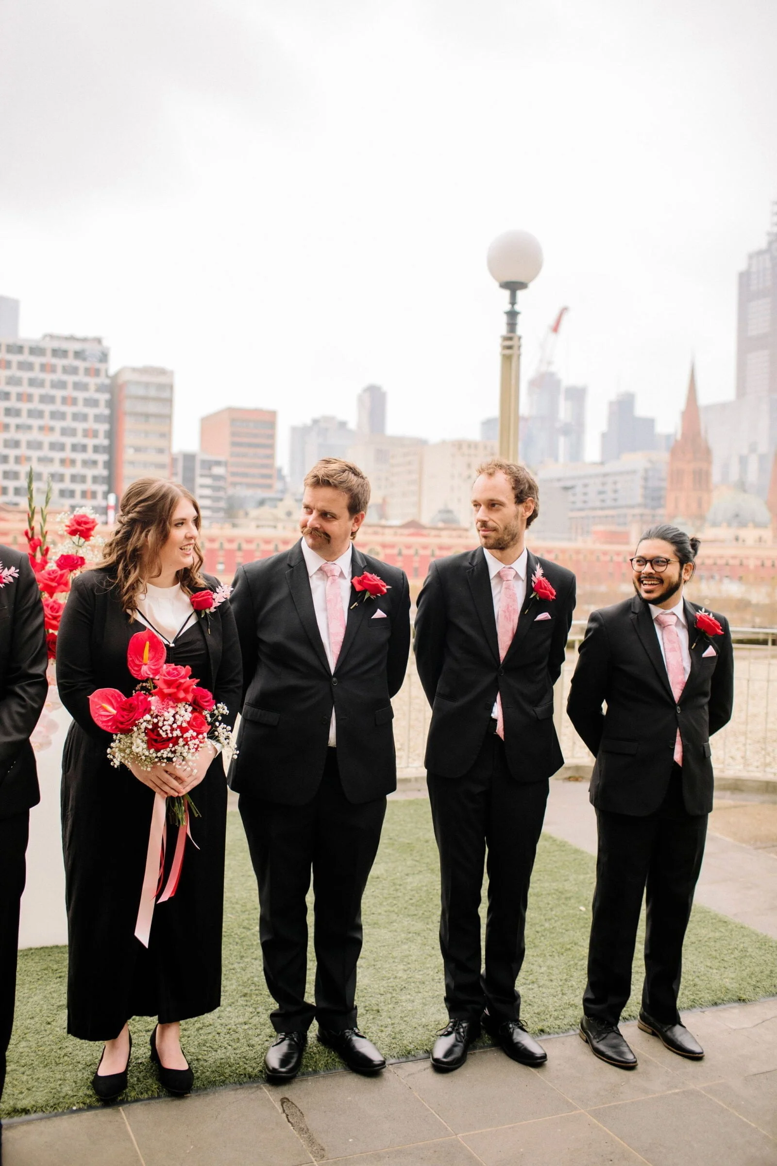 CONTRIBUTING VENDORS Photographer It’s Beautiful Here Florist Bloom Boy Ceremony venue The Langham Reception venue & catering Rupert on Rupert Food Trucks Cannoleria Cake Miss Trixie Drinks Tea Wedding favours Candy Addictions Signage & stationery Self-made Printer Classic colour copying Entertainment Melbourne Entertainment Company Celebrant Kate Morgan Rings Eli Speaks Jewellery (bride), Evita Jewellery (groom) Transport City Car Hires THE BRIDE Bridal gown Bonita Couture Shoes Pink Inc from Myer Accessories F&H Studio Hair Natalia Abelas Makeup Jaynelle Lording THE GROOM Suit & tie Institchu Cufflinks The Cuffshop Shoes McCloud Shoes Watch Daniel Wellington Barber Barber Black Sheep Groomsmen suits Ferrari Formal Groomsmen shoes Myer