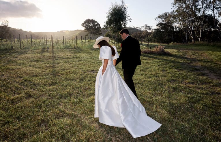 “We wanted country romantic vibes,” says Meg and Bob of their Geelong winery weddi…