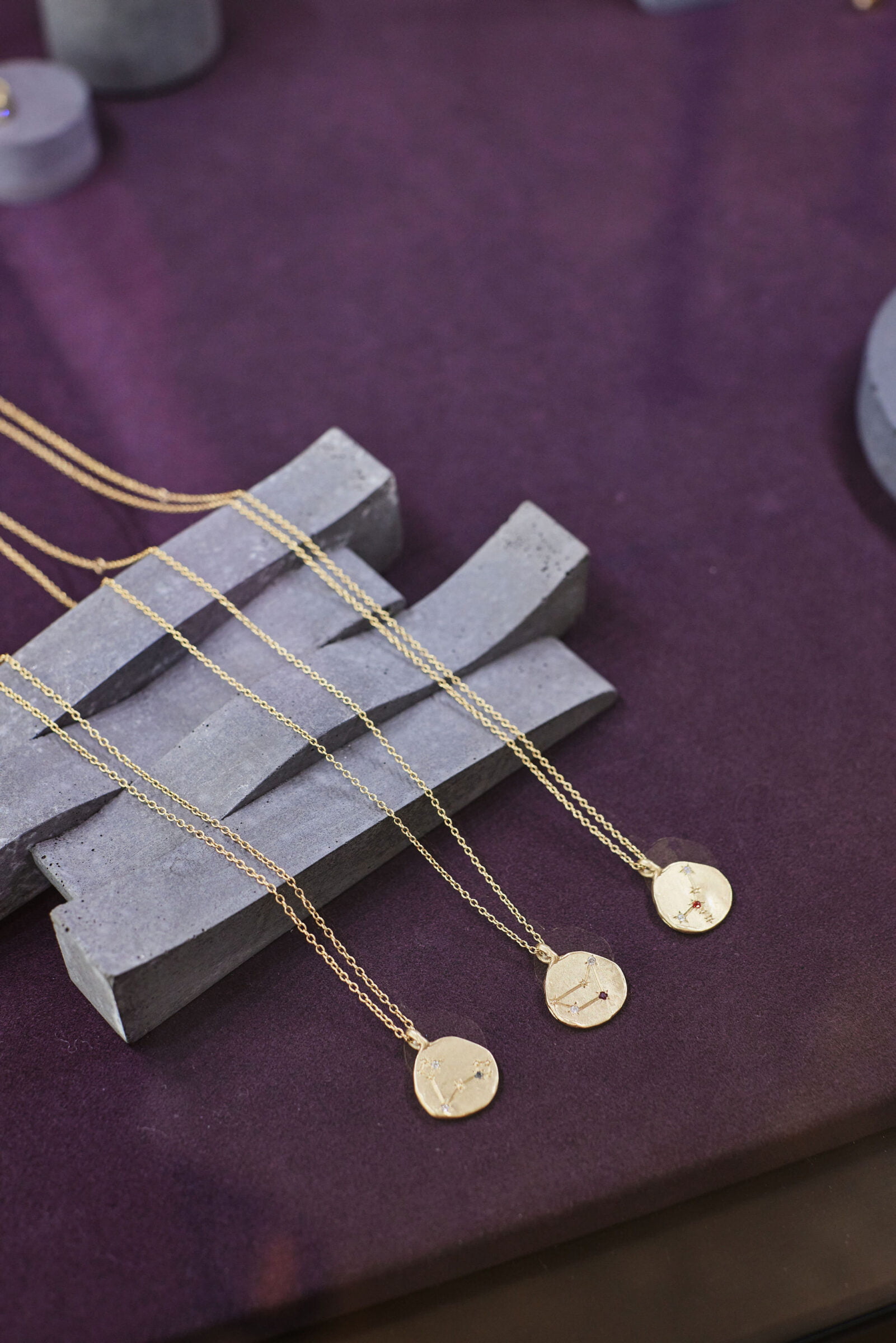 Davina: I am very much immersed in art, culture, literature and nature. These things provide bottomless opportunities for a depth of beauty, meaning and reverence. Dreams, literature, weird films, my wild cliffs, and having lots of talented, hilarious friends that keep the conversation unbound. Always aiming for my whole world and life to become part of the creative process. I am not trained as a jeweller, so I start with lofty ideas that then the team helps me to land technically.