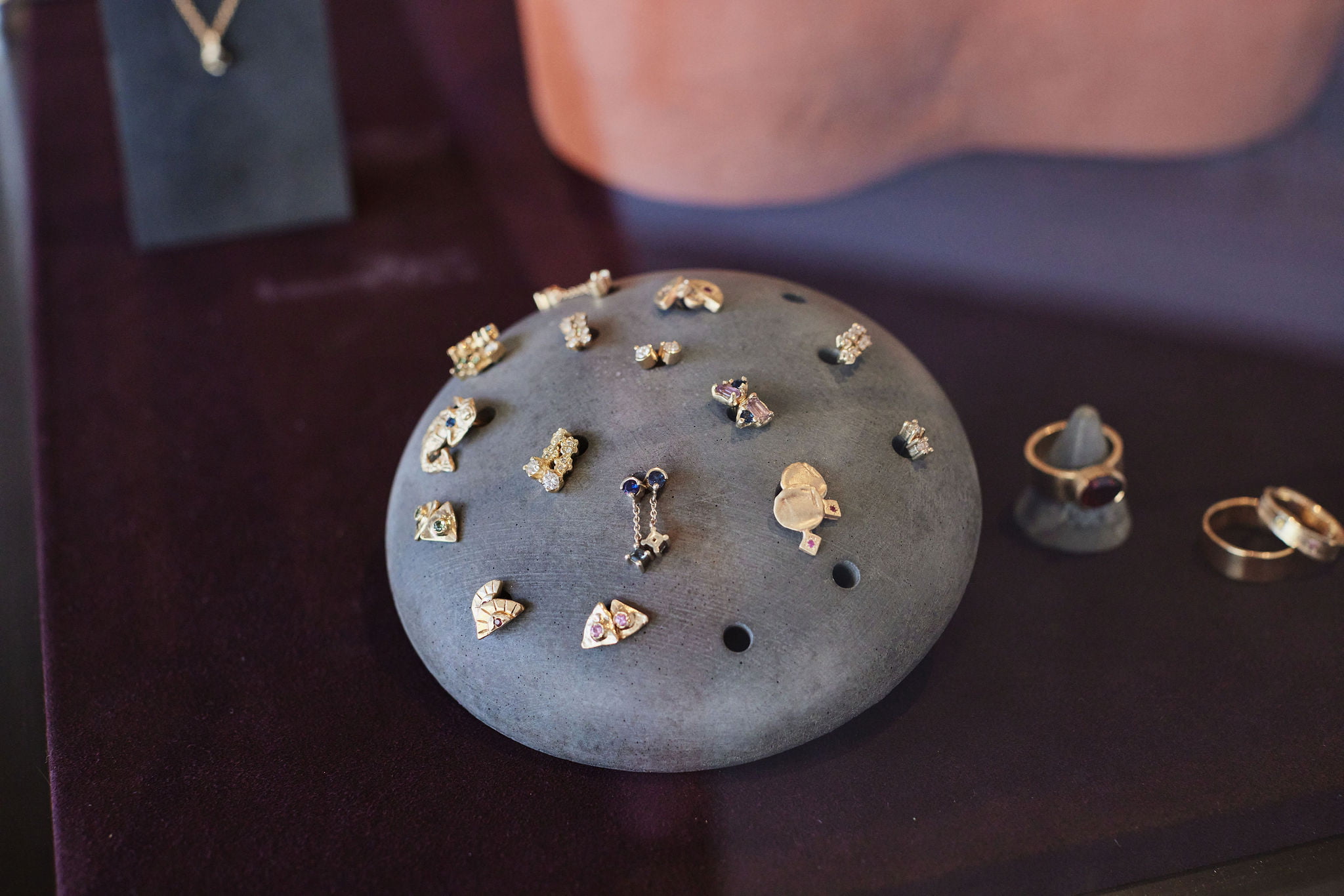 Raymond: It is really informed by beauty in asymmetry and using natural materials to make unique pieces. We have a large gemstone collection we source ourselves, so combining those pieces into design results in a different outcome. I come from an artist background not constrained by traditional jewellery and have an aversion to making pieces that have existed before.