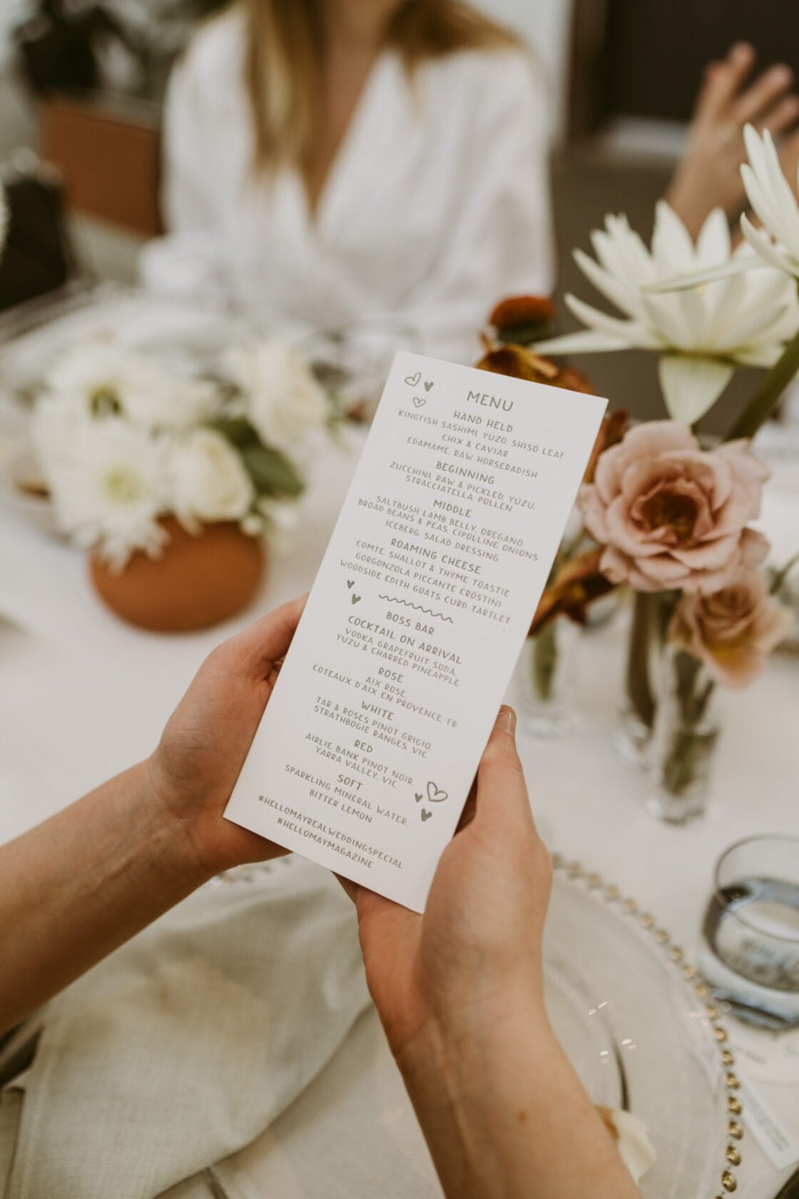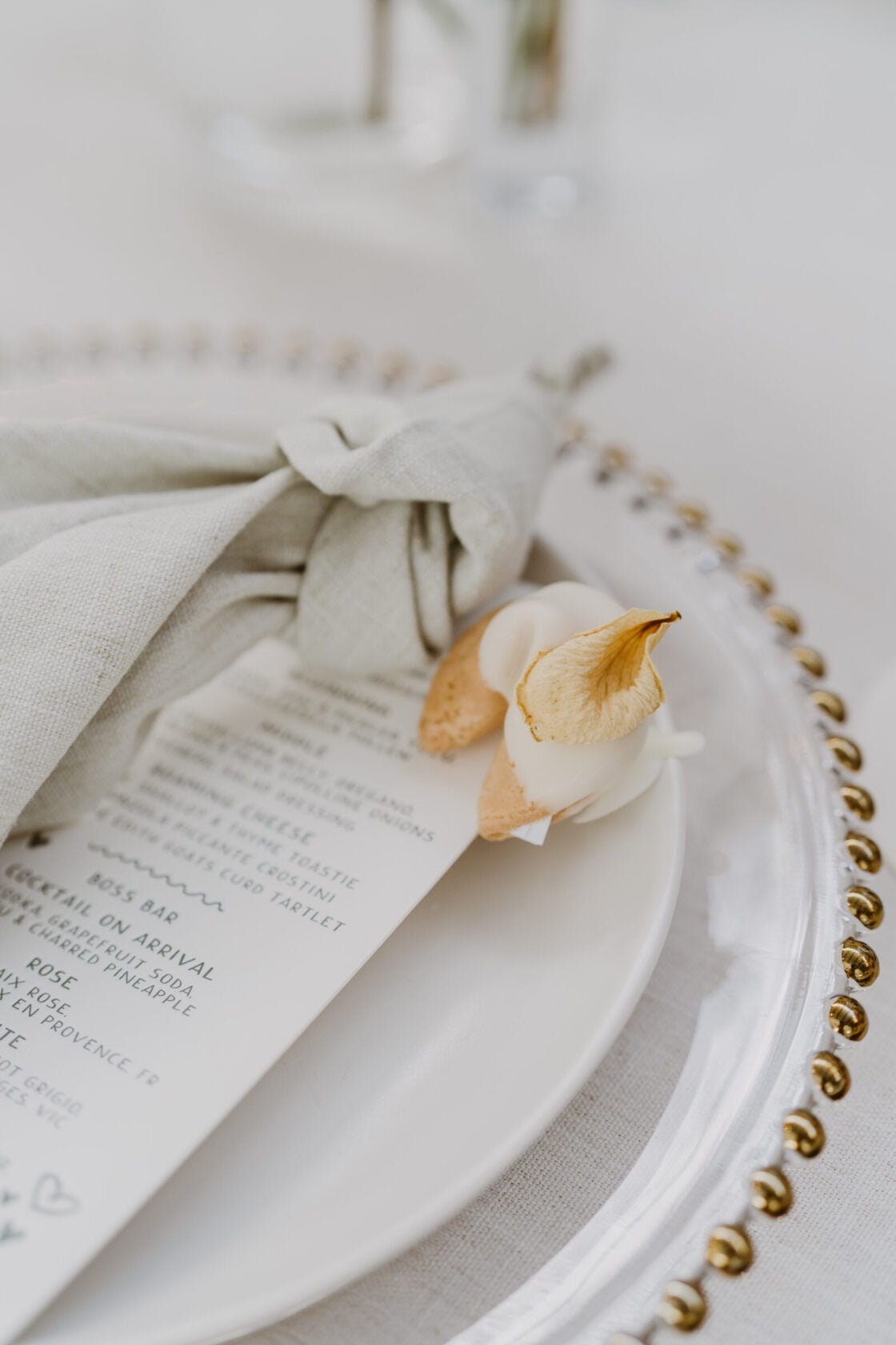 Now let’s take a minute to talk about this table. Kim hired furniture from the good folk of Place Settings and linen from Simmons Linen Hire and tied it all together with more blooms from Pomp & Splendour as well as fortune cookie favours from our new mate MJ at Torte By Mirjana and menus, coasters and place-cards from Terrace Press (one of our fave letterpress printers in Sydney who also designed our gorgeous invitations).