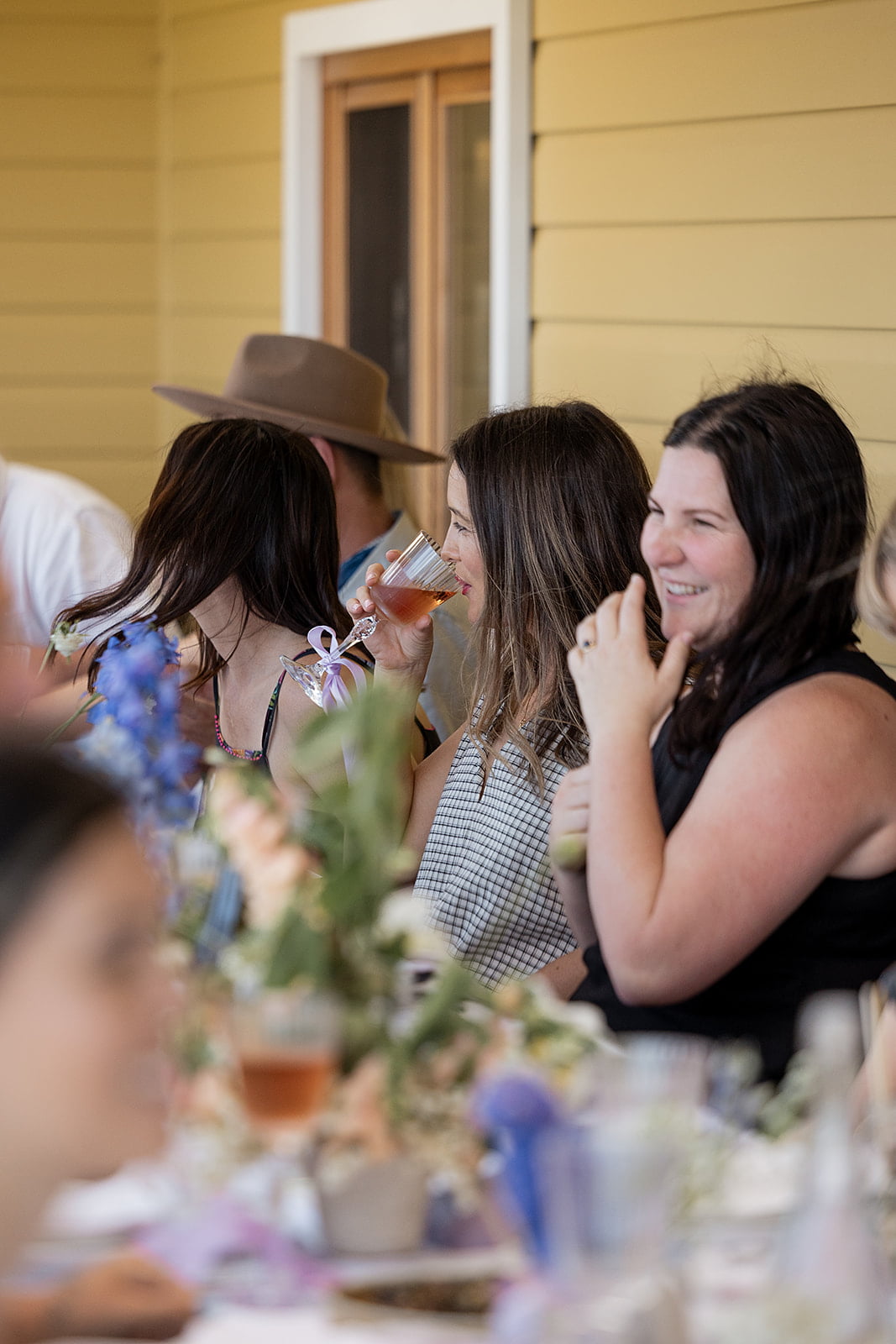 Then there was the food… Woah! Everyone was blown away with the Peruvian share-style feast thoughtfully prepared by local caterers A Chef’s Pocket. Think braised lamb shoulder, with pisco and sultanas and hibachi-grilled kingfish steaks with dry chimchurri… Literal *chef’s kiss*. When it came to the drinks list, Cape Byron Bay Distillery provided a Brookie’s Gin cocktail for guests on arrival, while Clunes-based small-batch wine company Jilly Wines (run and founded by The Grange owner and winemaker Jared) flowed freely.