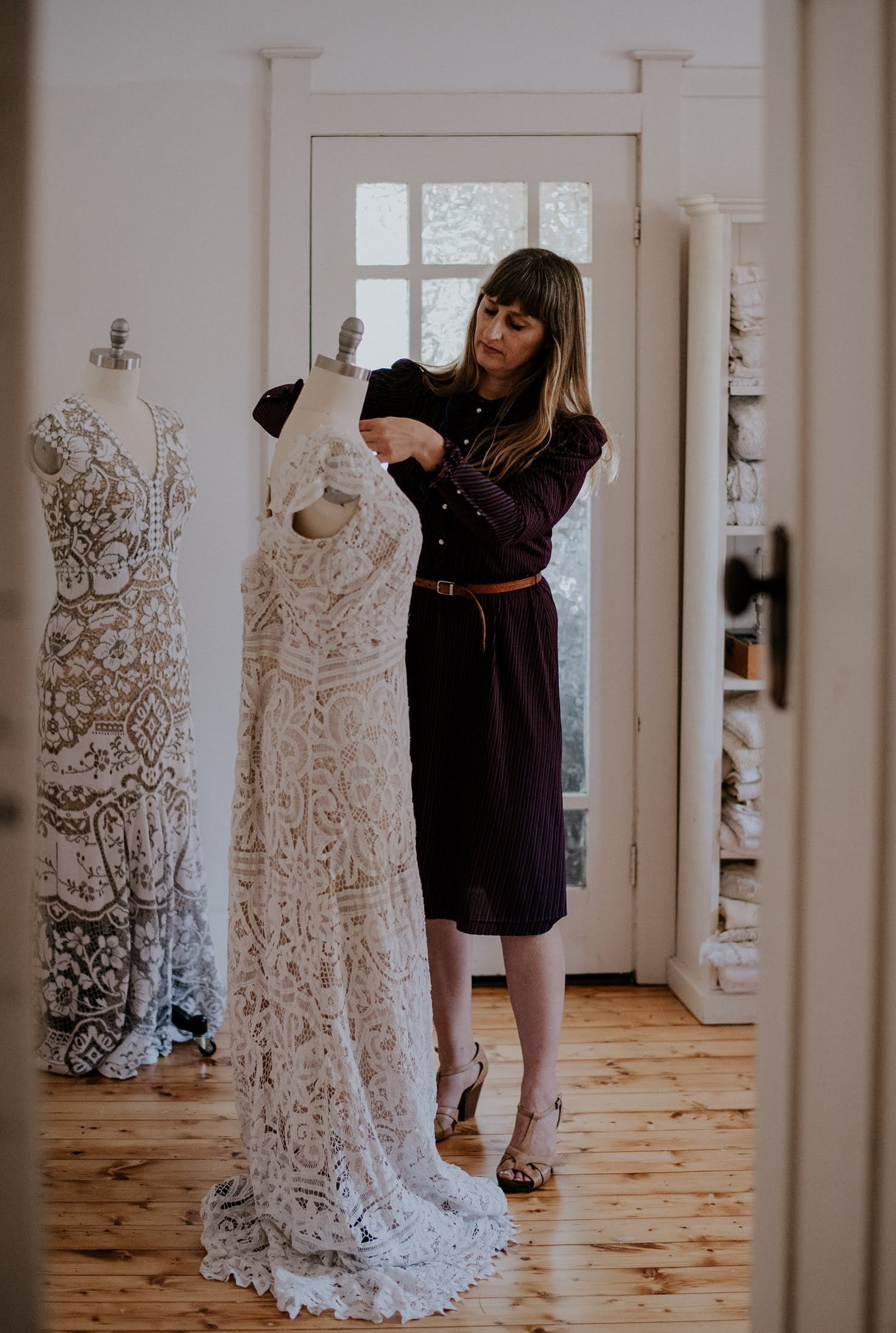 How do you ensure environmental sustainability? “Our gowns are hand-crafted from antique lace. We salvage and repurpose this, which means your wedding gown will have a low carbon footprint. There are no sweatshops and we strive for zero-waste.”