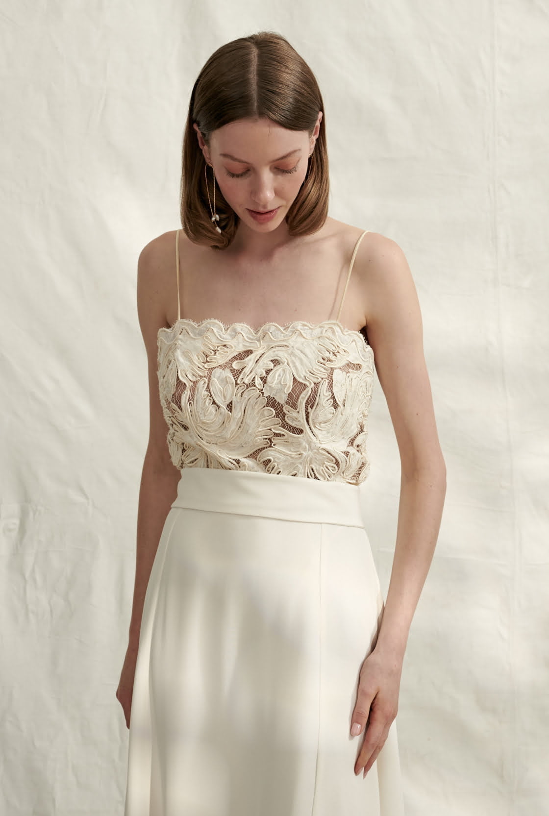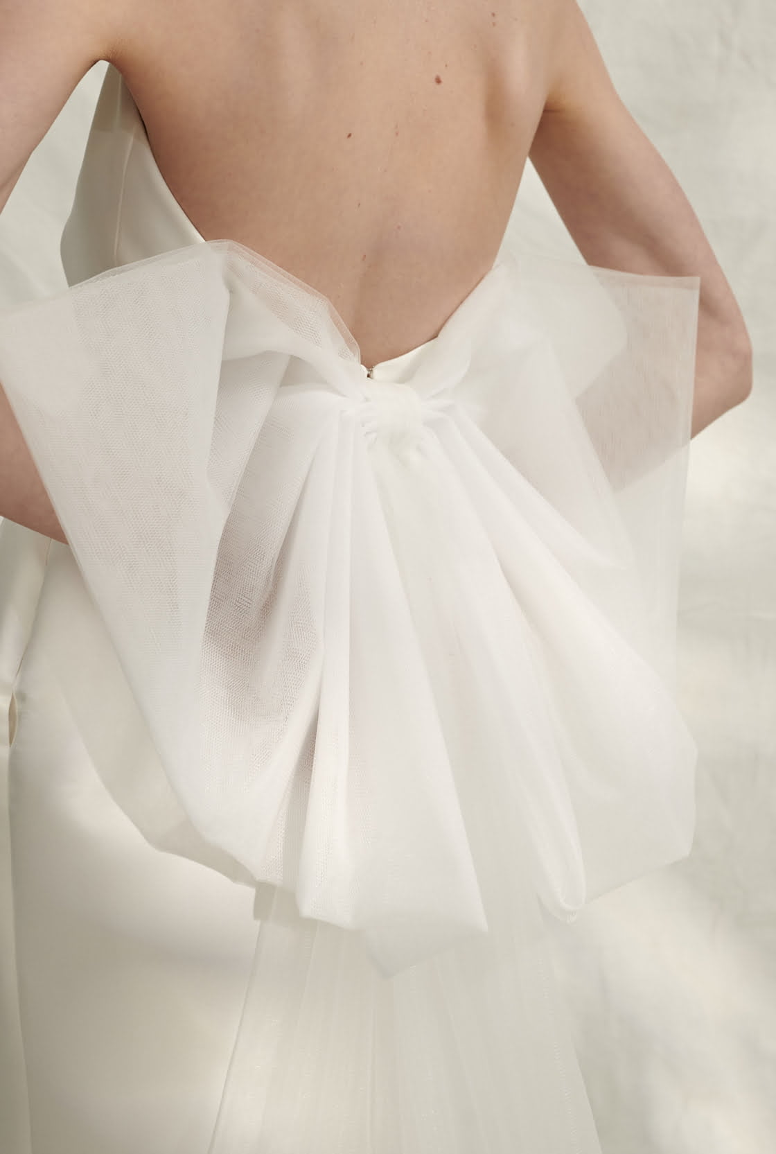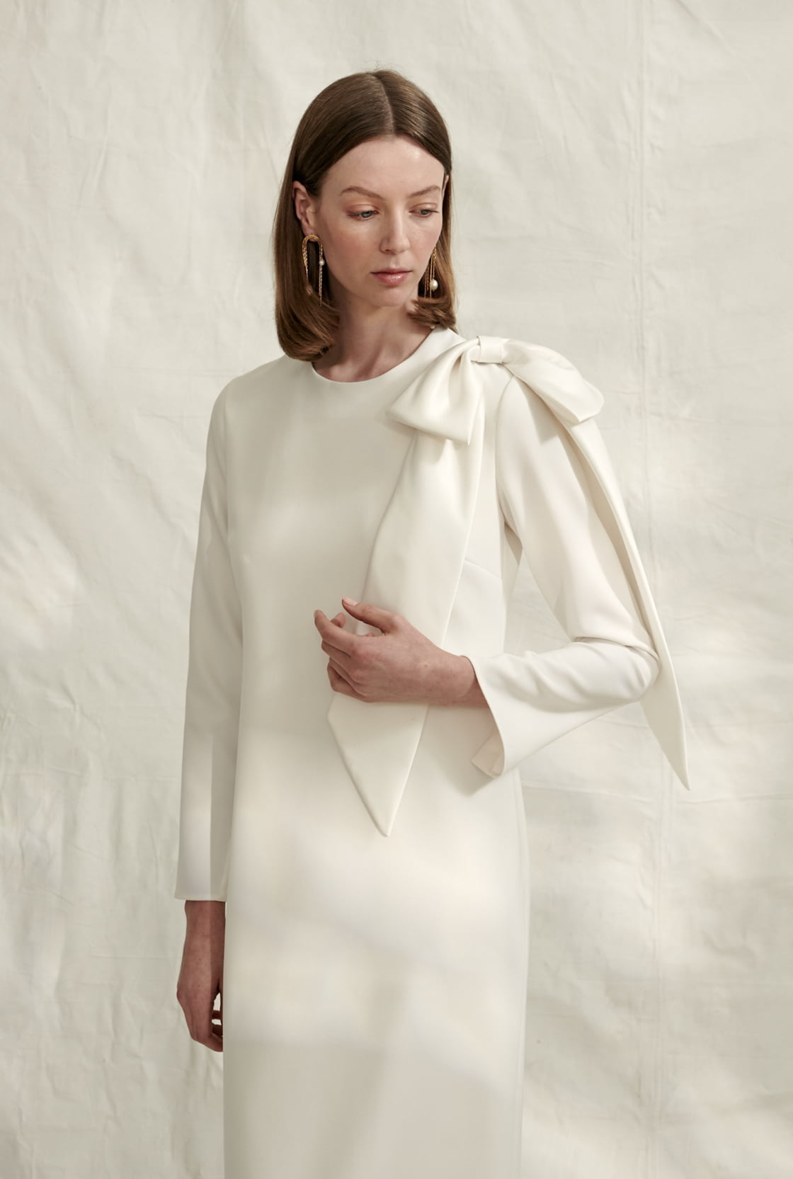 Worth noting, this is the in-house brainchild of Anastasia (of Carte Blanche Bride) and Tania Stokes Couture who came together to design and produce (made in Melbourne, no less) a collection of gowns for the minimalist bride who wants to buck tradition and boast a short piece for their nuptials or needs something more low key for a civil ceremony, or reception. It’s also on the more purse-friendly side of things, with prices starting at $665. We like it so much you’ll find one in our recent round-up, 20 Looks To Elope In and editorial, Girl On Fire.