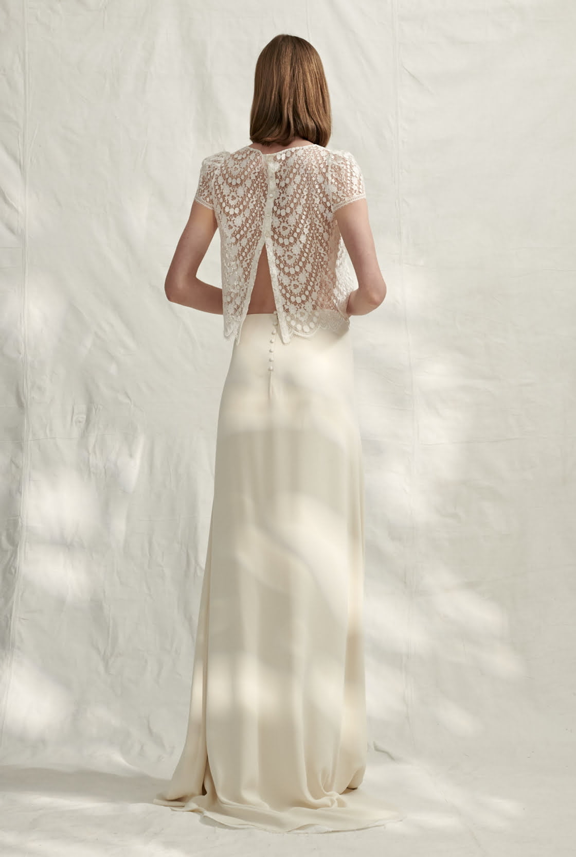 Sheer blouses, mixed with raw silk ruching and smocked for texture combine to create unique silhouettes and plunging necklines that remain oh-so classy thanks to the design lines and luxe materials. Paired with silk crepe skirts that fall so perfectly from the waist, the French duo behind Atelier Blanche clearly have the know-how to execute cool French wedding fashion at its finest.