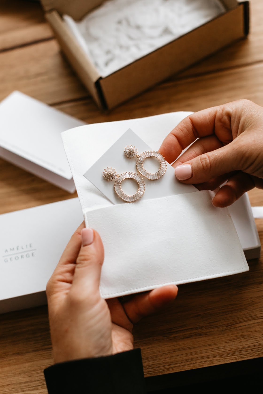 From jewellery to veils and silk accessories, can you please explain the evolution of your product offering? Our plan has always been for Amélie George to be a bridal mecca for what we have labelled ‘all things after the dress’. We run intensive planning sessions multiple times a year and have a vision board bursting with additional lines that we believe our brides will love! We concentrated on launching earrings first as the centrepiece of the brand, and additional lines are launched after much discussion about what we feel brides require next. Our veils took a year longer than planned and were a tricky undertaking because we were very specific about the tulle quality we required to ensure they don’t crush and still look perfect when posted to brides around the world.