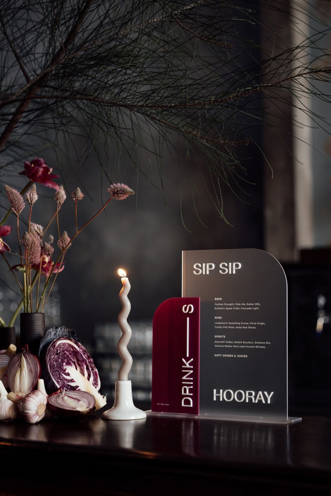 The architecture of Stomping Ground Moorabbin was very much a source of inspo for the team. “The bricks and grey concrete were the perfect canvas and sparked so many ideas in terms of textures that could complement them,” Kath shares of the styling.
