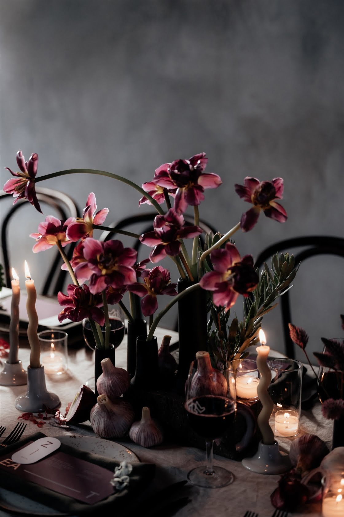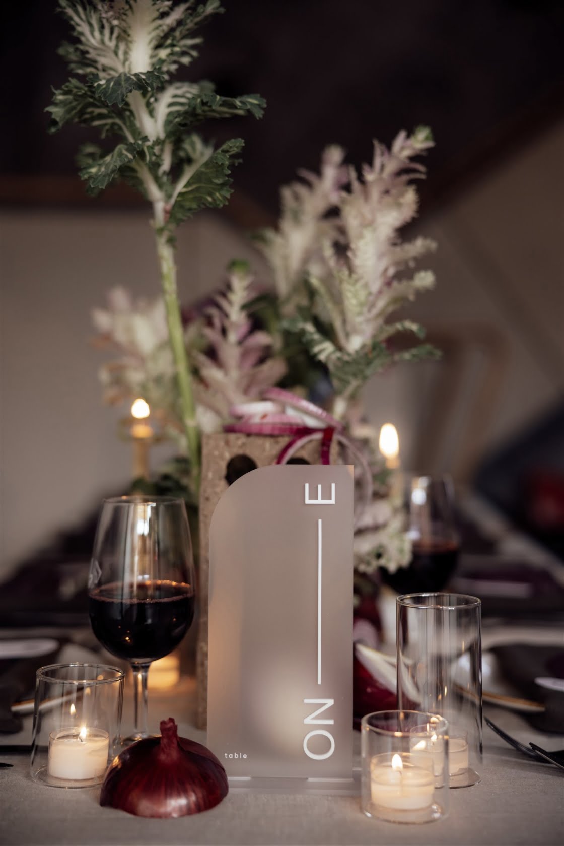 We make no secret of our adoration for deep, moody styling, so when we came across this oh-so-lush shoot by the fabulous team at Bow Creative, you just know it was love at first sight. Lilac has been trending in a big way, and Bow Creative nailed it with this edgy yet luxe concept, which transformed one of Melbourne’s newest wedding venues, the industrial chic brewery Stomping Ground. “Lilac is often considered a soft pastel so we wanted to take it for a journey to a darker, more brusque world,” Kath of Bow Creative explained.