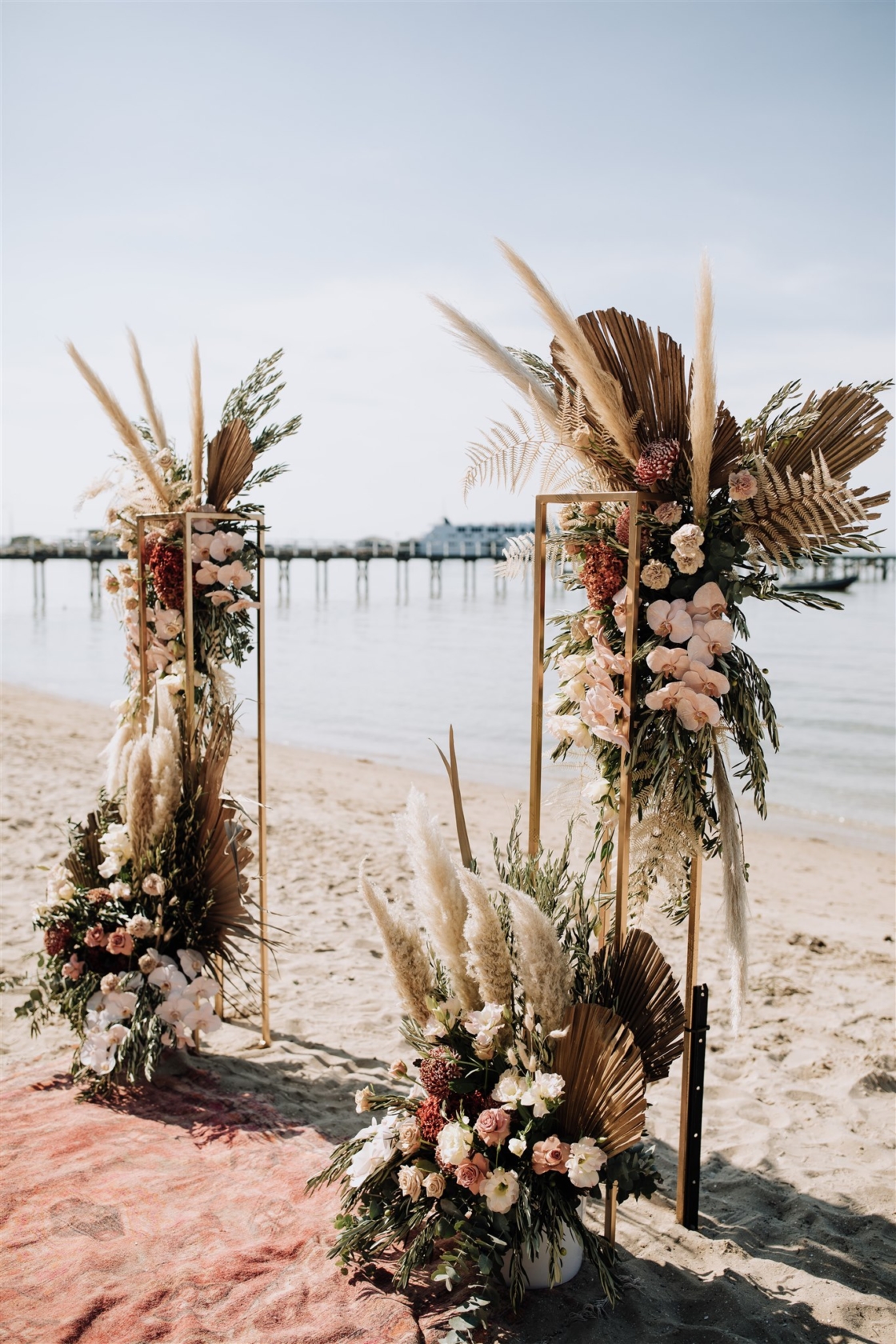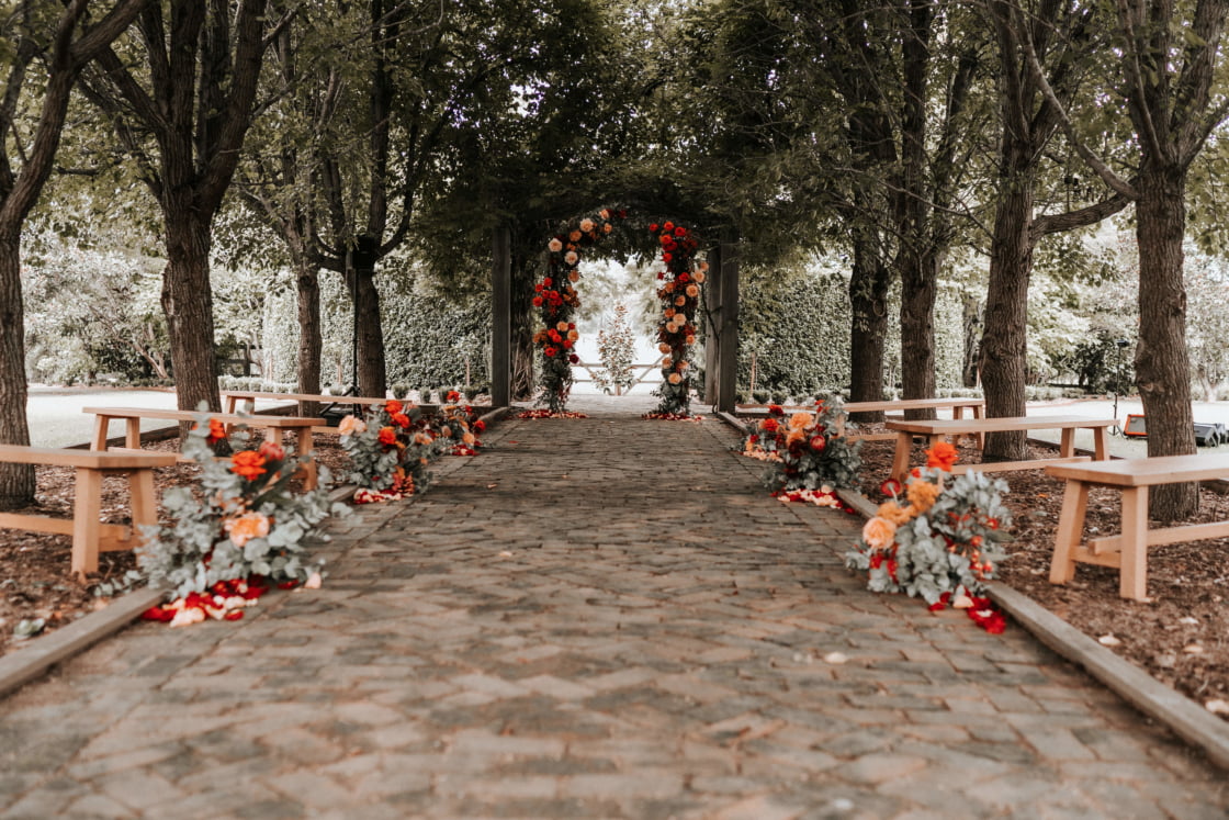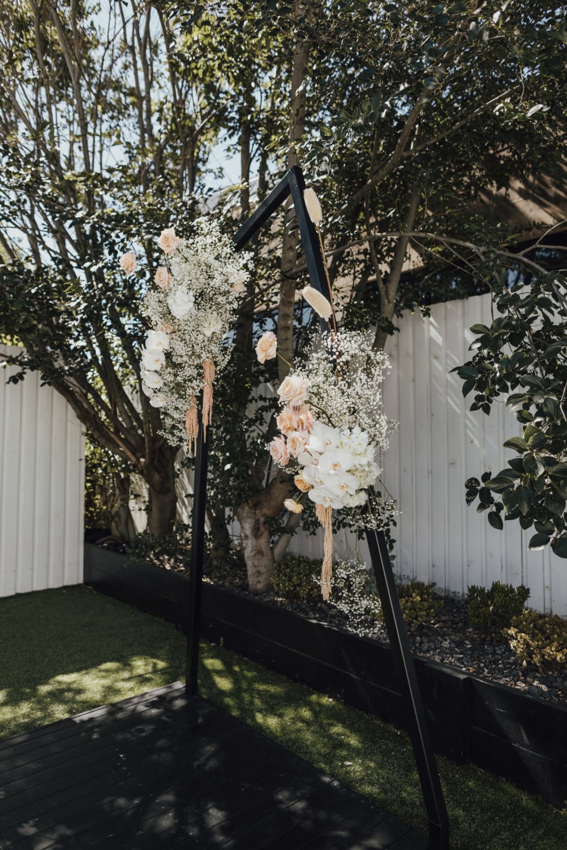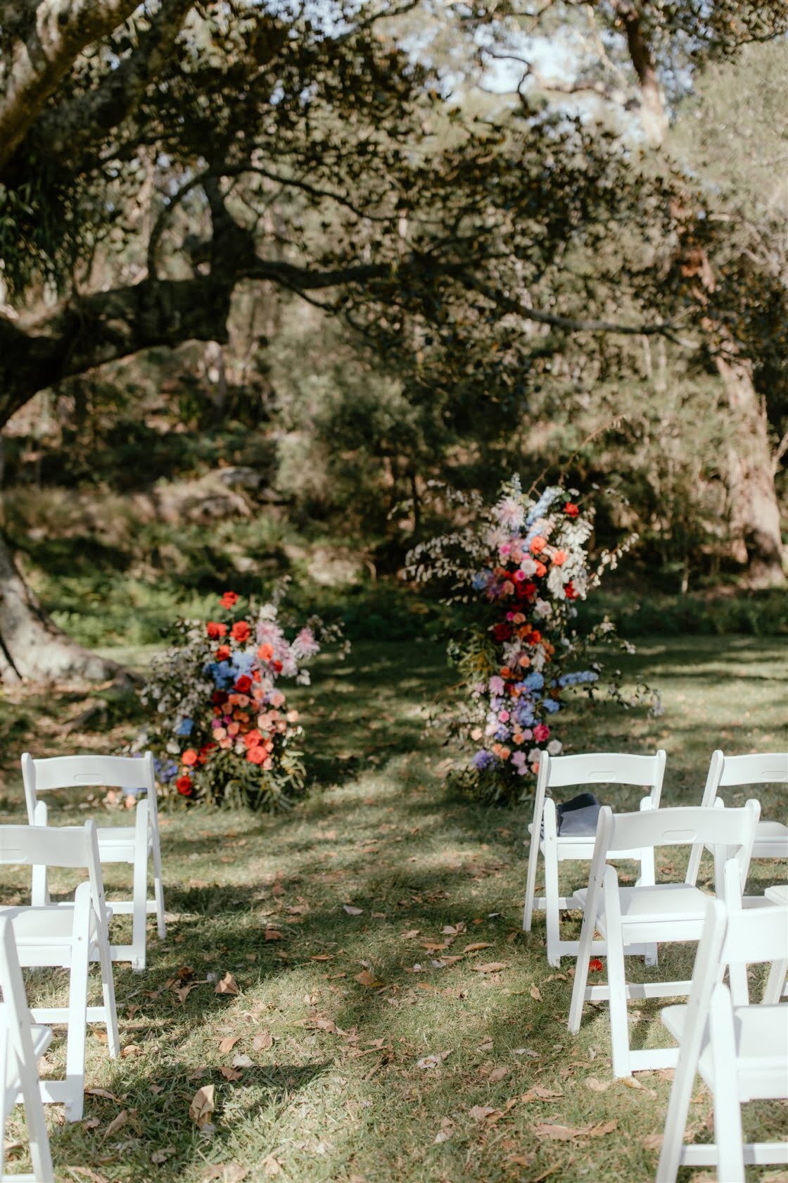Today, amongst this hefty roundup, we’ve been sure to cover everyone off whether you’re tying the knot on the front porch, in the backyard or amongst a grove of towering trees. Notable mention goes to Eden & Bell’s colourful floral pillars set amongst the backdrop of Audley Dance Hall’s lush surrounds (fourth ceremony setup down) and The Bluebird Collective’s simple coastal-inspired styling five snaps from the bottom.