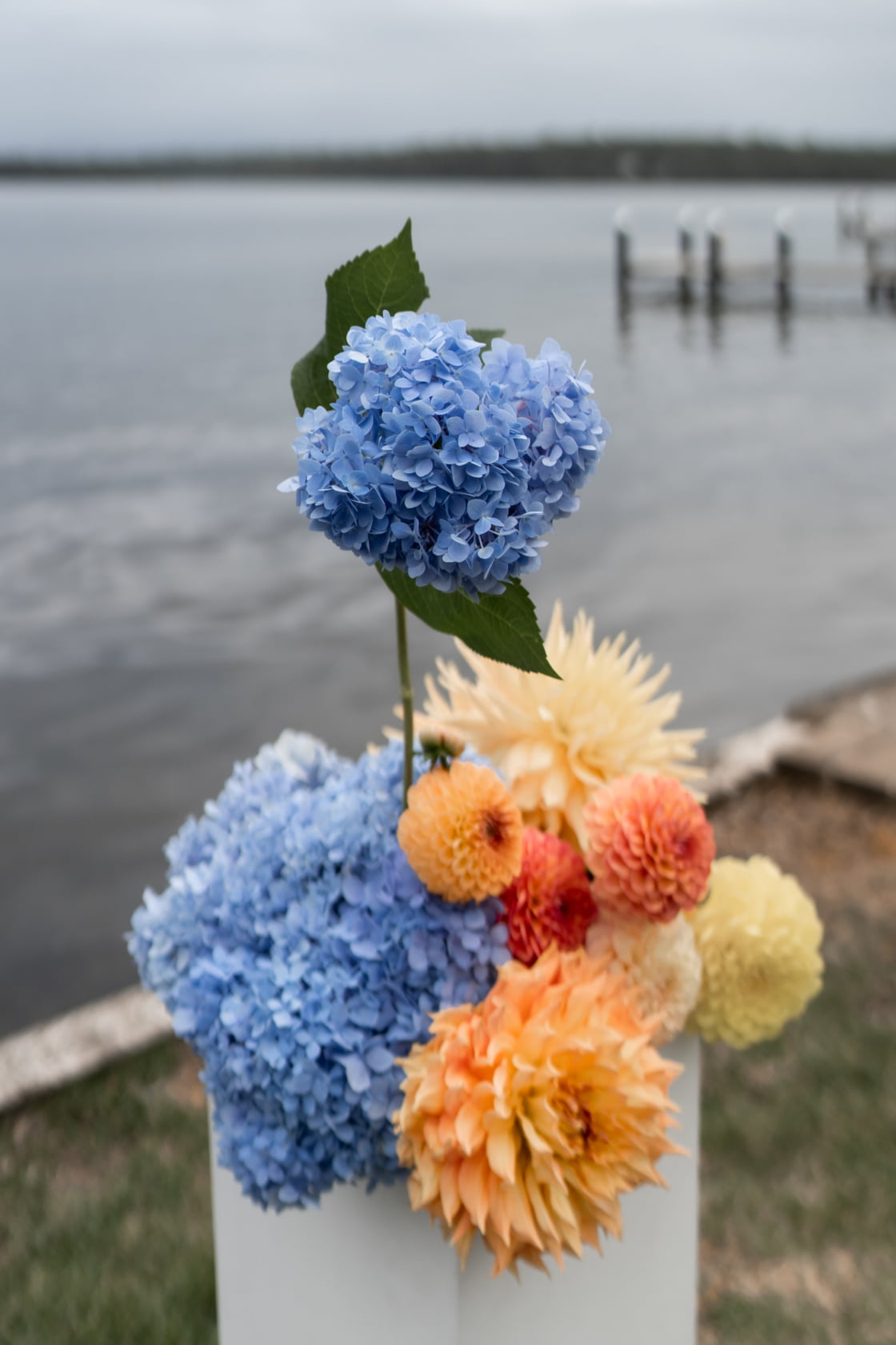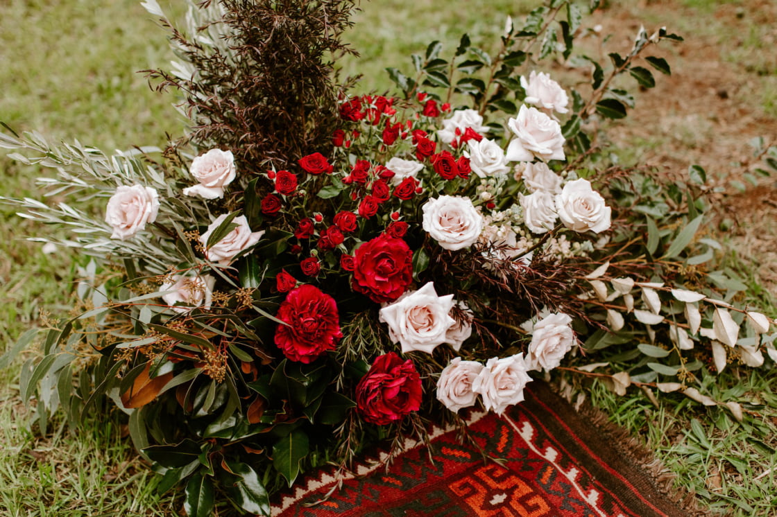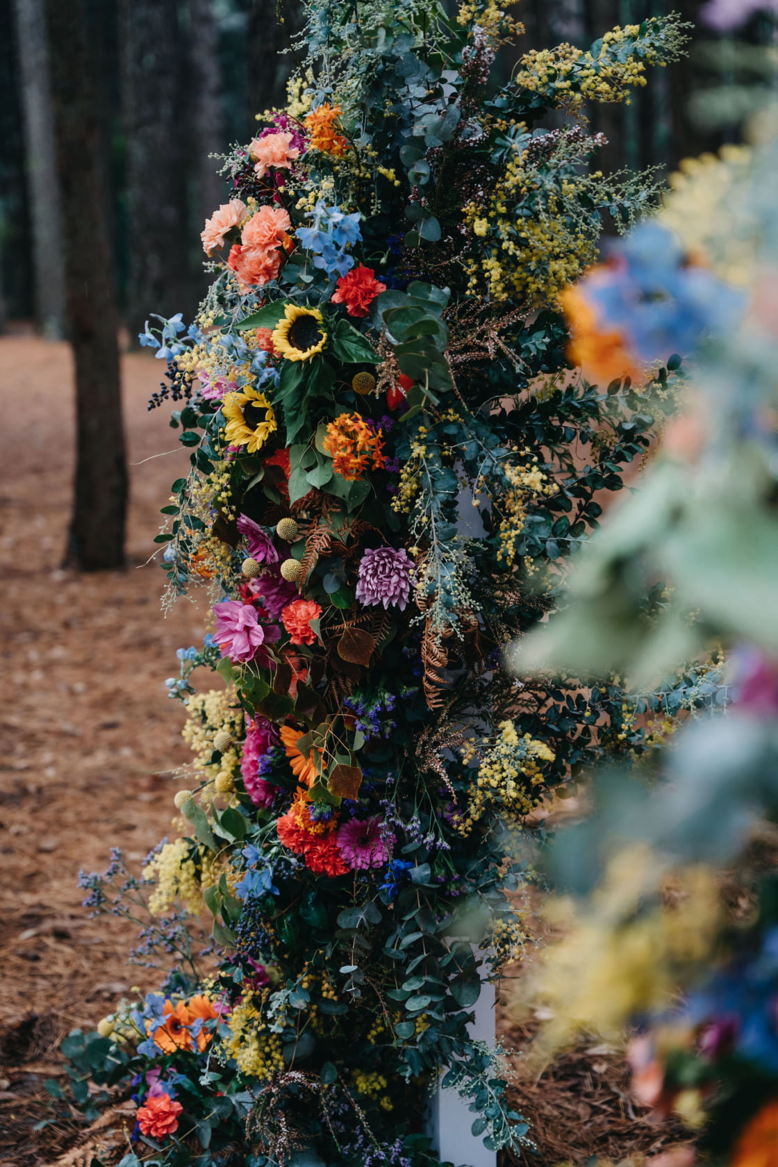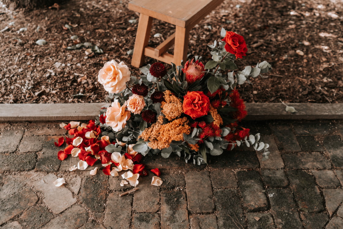 Today, amongst this hefty roundup, we’ve been sure to cover everyone off whether you’re tying the knot on the front porch, in the backyard or amongst a grove of towering trees. Notable mention goes to Eden & Bell’s colourful floral pillars set amongst the backdrop of Audley Dance Hall’s lush surrounds (fourth ceremony setup down) and The Bluebird Collective’s simple coastal-inspired styling five snaps from the bottom.
