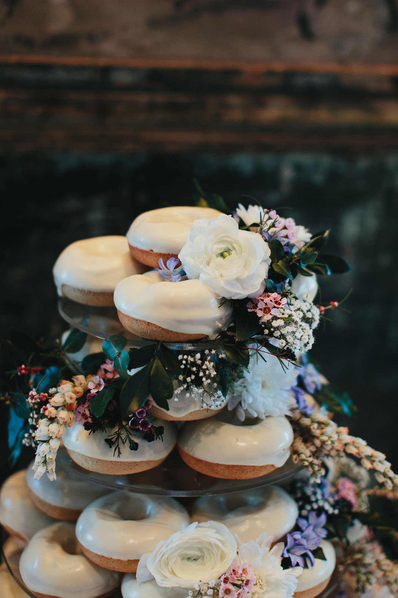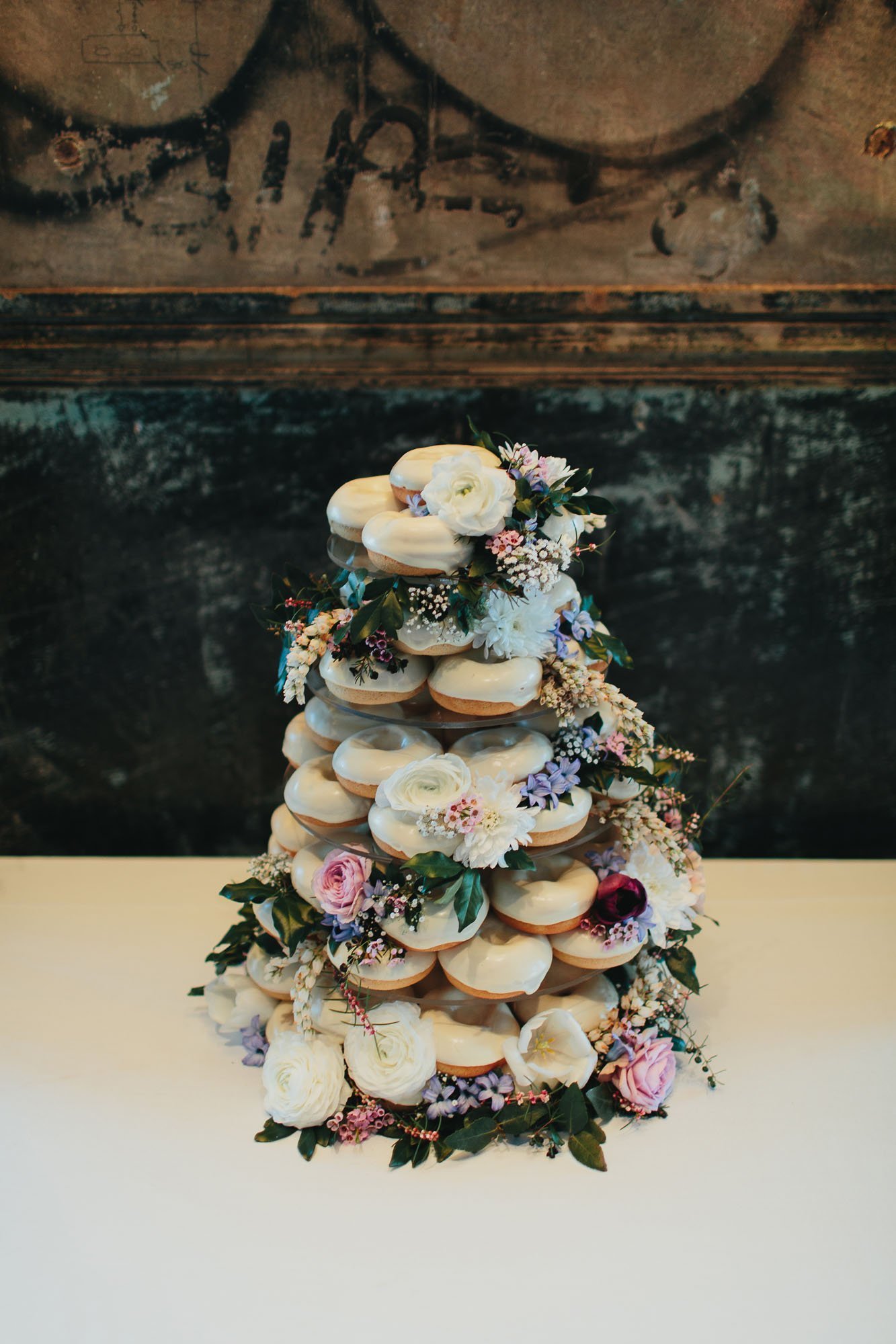 Not only is cutting the cake a sweet photo opportunity (see what we did there?) but your dessert can also be an edible centrepiece that contributes to the overall vibe and decor on the day by simply just sitting there. Just check out the spectacular two tiered naked cake by The Pear Blossom below complete with Art City Donuts.