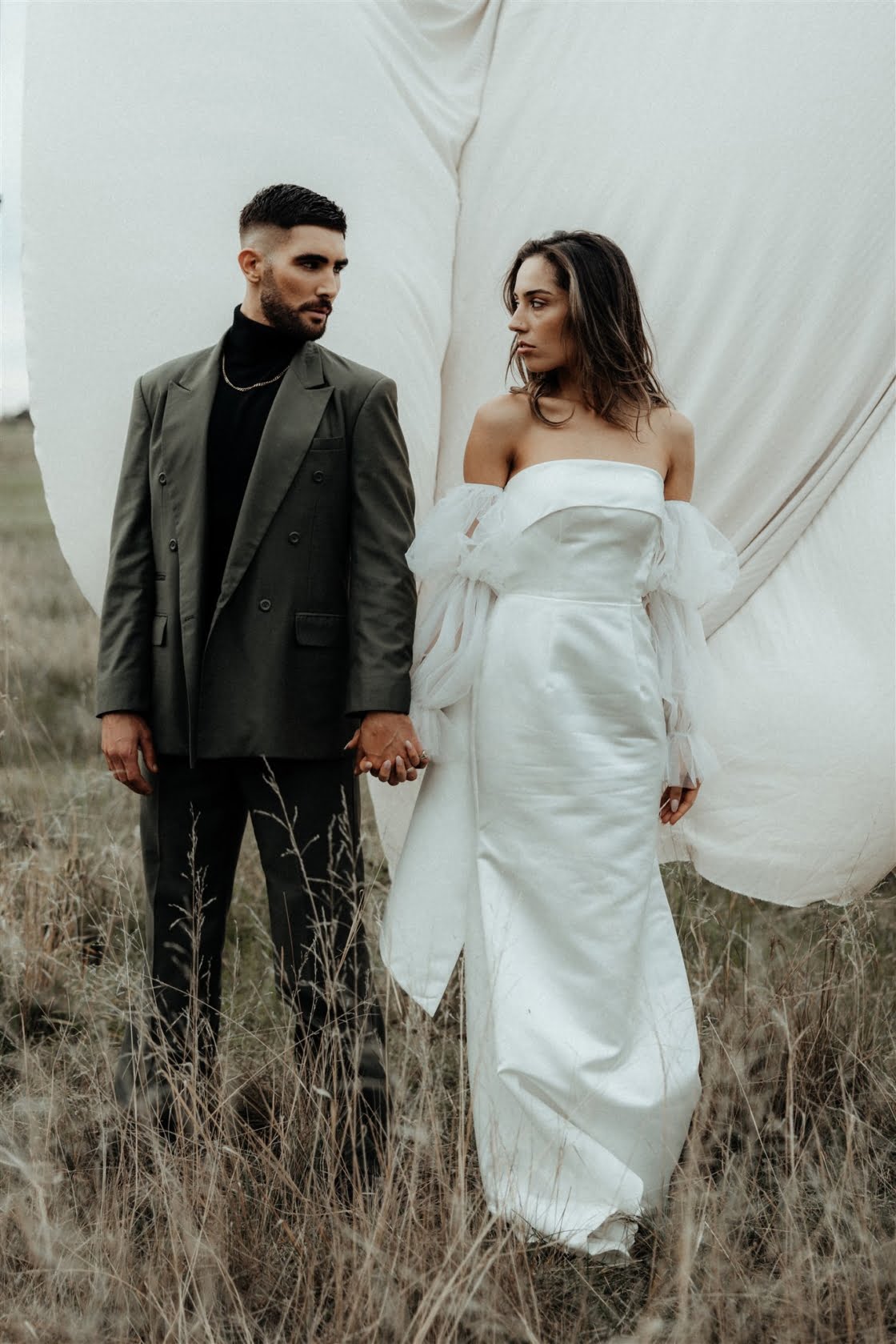 CREDITS Concept, Creative Direction & Floristry Wildblooms Florist Creative Direction & Photography Maegan Brown Moments Cinematography Kimberley Moore Media Planning & Styling Weddings By E Gowns Mia Ateliers Hire Items Dann Event Hire (Bars & Chairs), Bangin Hangins (Flags), Event Merchant Co. (Tableware), Cloth and Confetti (Linen) Stationery State of Elliott Cake Ladybird Cakes Cocktails Mister Bartender Venue Private Property Hair Hair By Lyana Makeup Esaje Shoes Meggan Morimoto Accessories Amélie George Bridal (Earrings), Shine Shades (Sunglasses), Ivory Edit (Hat) Suits Reigner Clothing Tuxedo Politix Models Chelsea Victoria (Bride), Jony Berry (Groom)