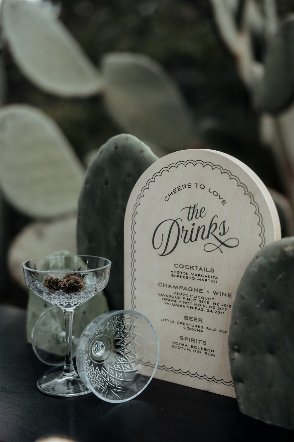 Pairing the deep olive tones of central Victoria with the shape and form of the cacti, State of Elliott nailed the brief. We adore the twist on the arched menu trend, jazzed up with some delish type and an even snazzier border.