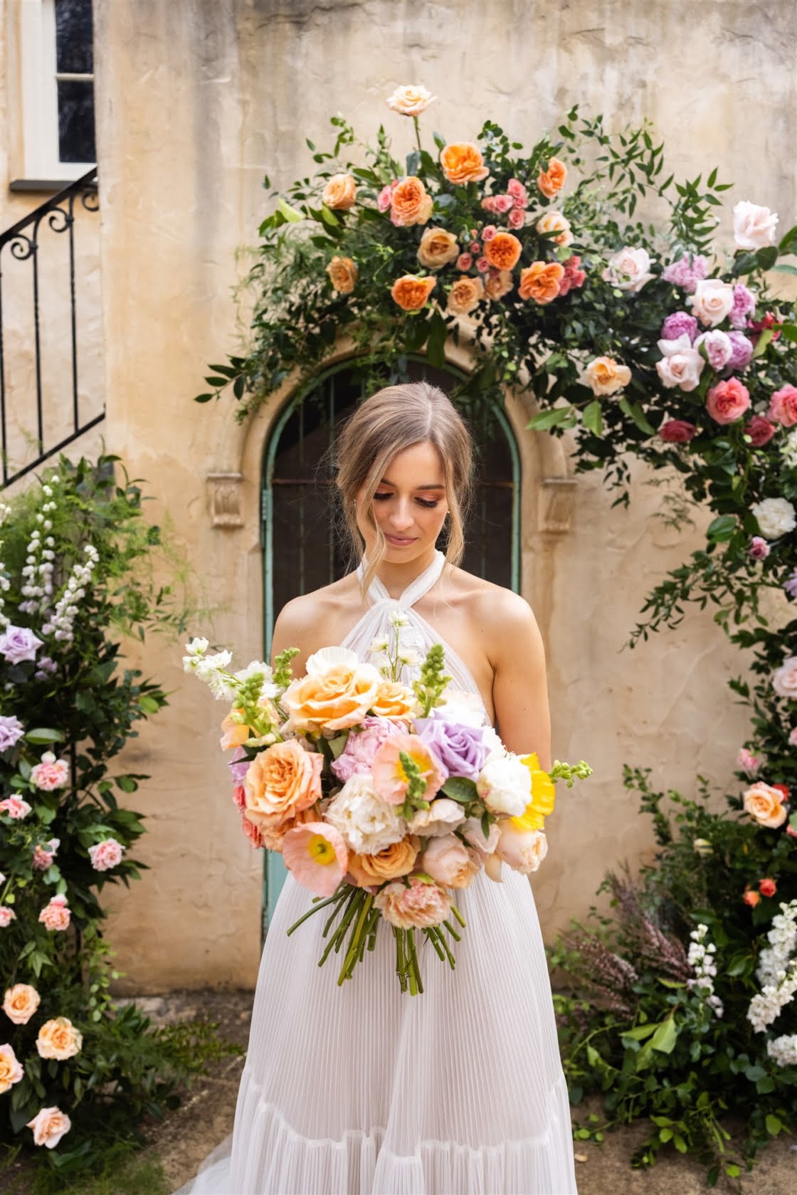 Half of the creative brains behind this concept, Dana of Will & Co. shares, “I have always been a lover of vintage, especially when it comes to brighter floral designs.” The “old-world charm” of the venue blended well with Dana’s modern approach to capturing images. “I’ve slowly been working toward a more editorial feel with all of my images with weddings so this was a really good opportunity to be all-in and sink my teeth into work that was really true to myself!”