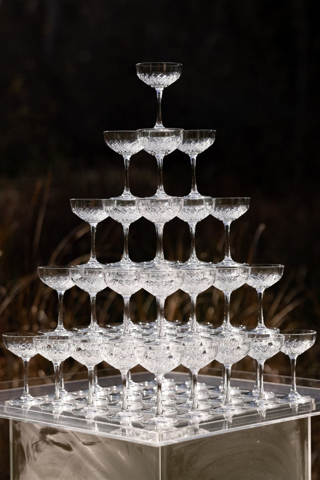Champagne towers sure are having a moment and we’d very much like them to stay, thanks. Gold Champagne Towers were all over it with this chic acrylic plinth setup. A great alternative to cake or if you’re feeling a bit extra, why not have both?
