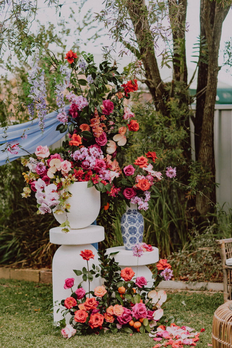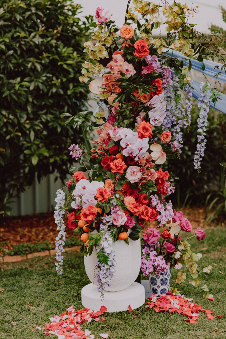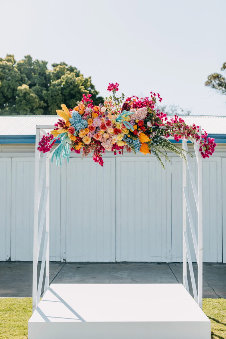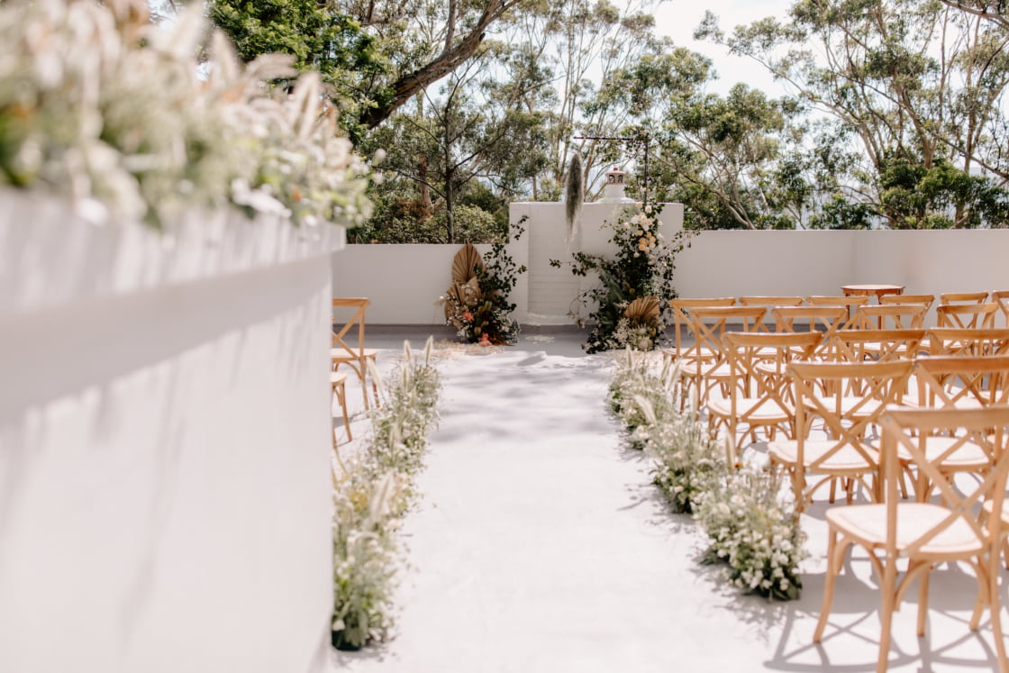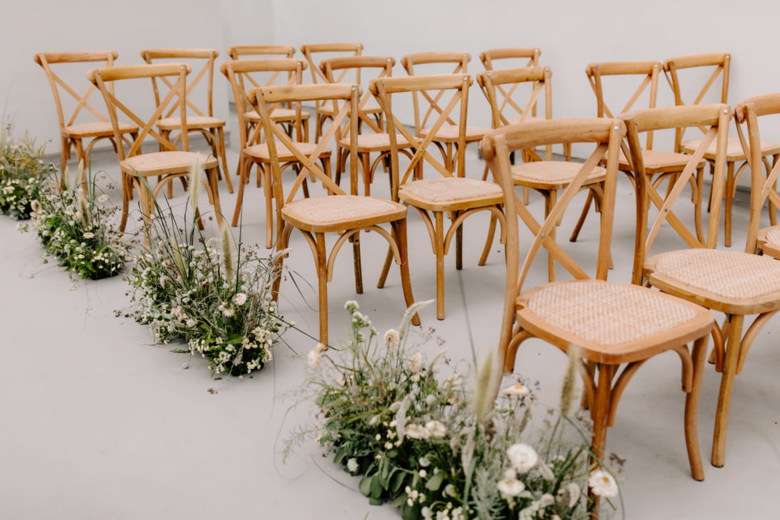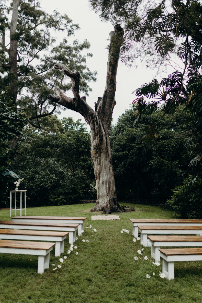 Your ceremony is your wow moment. It’s the moment all your guests are there for and the one that will live on in your memory for all time. We say go all-out. But going all-out looks different for everyone. It might mean hand planting fresh cosmos beside each bench seat of your aisle, or calling in Mrs Gibbons to craft something positively dreamy, complete with trailing orchids and softly draped fabric (the fifth ceremony set up from the bottom, for those of you asking).