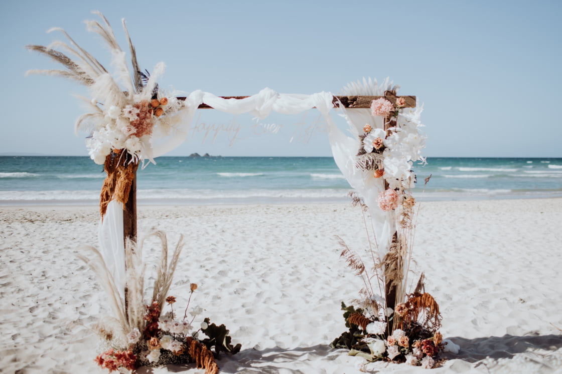 We do so love an option, so today we’re giving you 21 to start with. Do with them what you will (though we recommend pinning your faves, this is wedding planning gold, after all!) We’ve been sure to include a little somethin’ somethin’ for everyone from the ultra-bright work of Duo Events (second setup down) to the dried palms and neutral tones served up by Flowers In Nature, another five spots sweet ceremonies down. You’ll also find the divine Elope’s work represented just below and, again, right at the bottom of this post.