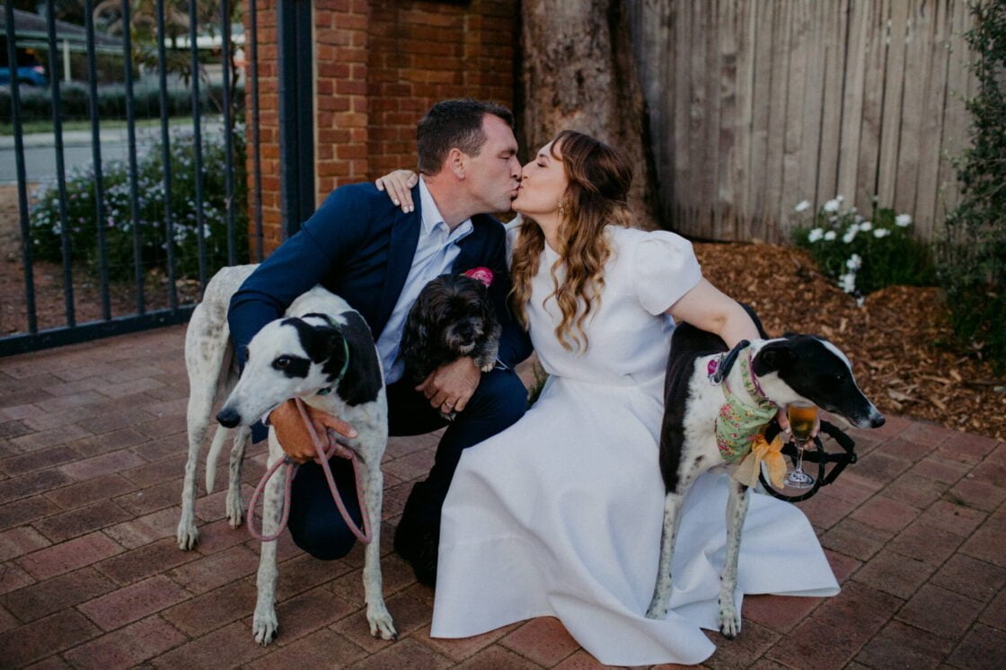 THE VENUE “We have LOTS of dogs! Two adopted Greyhounds, Daisy the queen and Buzz the 18 year old Staffy and Fishmarket Reserve Guildford is our absolute fav hangout! The Tree, the river, the adventure = The Ceremony! We also love our backyard and our home, Three Trees Cottage. We have worked so very hard to make it special and oh golly, who doesn’t want to get married at home and celebrate with all your family/ friends/ dogs/ chickens/ ducks and rescue lorikeet!”
