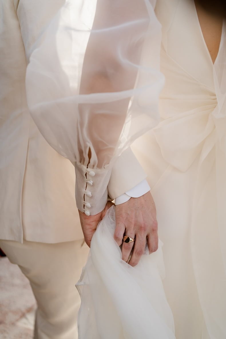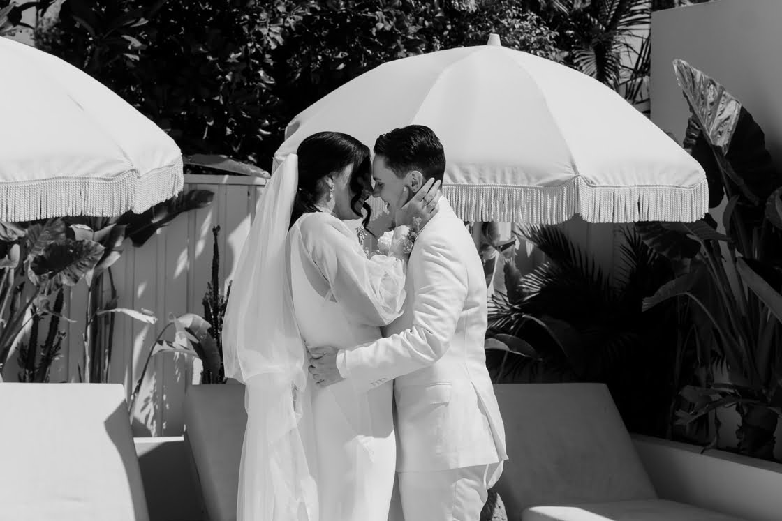With a long engagement planned from the outset, Amy and Kat were lucky enough not to have to postpone their date due to COVID, and called in a stellar team to make their wedding dreams reality. Tropical Romance & Co. took care of all the amazing pics, which you’ll see in just a second, the couple of the moment sorted themselves out some stunning outfits (including a floaty ethereal veil by Amélie George that we just LOVE), and got down to getting hitched.