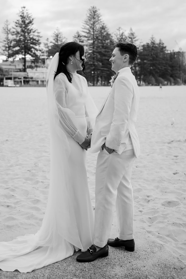 CONTRIBUTING VENDORS Photographer Tropical & Romance Co. Florist Foliar Stationery & Signage Reece Tully (friend) Printer Peterkin Premium Paper & Printery, House of Harvey Co. Ceremony, Reception & Catering Rick Shores Hire Items House of Harvey Co. (sign stands, white cylinder plinths) Sound Hire Gold Coast Audio Hire Celebrant Love Out Loud Celebrant Rings Molten (Amy), Crooked Howlet Designs (Kat) Accommodation & Mini-ceremony Crystal Pacific Palm Beach THE BRIDE (Amy) Gown Harriette Gordon Bridal Boutique Bloom Veil Amélie George Robes Maurie and Eve Shoes NAKEDVICE Earrings Amber Sceats Hair Sarah Kelly Co. Makeup Mia Connor Fragrance Coach Dreams Sunset via Myer Wedding party Bec & Bridge (dresses), InStitchu (suits) Bridesmaid shoes NAKEDVICE Bridesmaid gifts Molten (earrings) THE BRIDE (Kat) Bridal suit InStitchu Shoes Gucci Rings Crooked Howlet Designs Fragrance Dior Sauvage via Myer Wedding party InStitchu (suits), Chancery via The Iconic (dress)