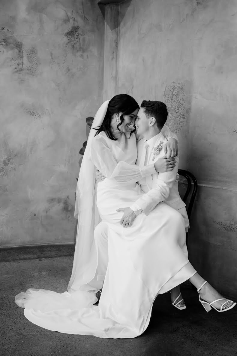 THE VENUE “Rick Shores is our favourite restaurant. Kat is a massive foodie, which is something that has definitely rubbed off on me. When we first enquired, we thought we wouldn’t be able to afford such an elegant venue, but we quickly realised that the view of Burleigh Heads and polished concrete at Rick Shores meant we didn’t have to spend as much on styling. We also decided to have a weekday wedding on a Thursday, which saved us money and meant our family and friends got a long weekend at the coast.”