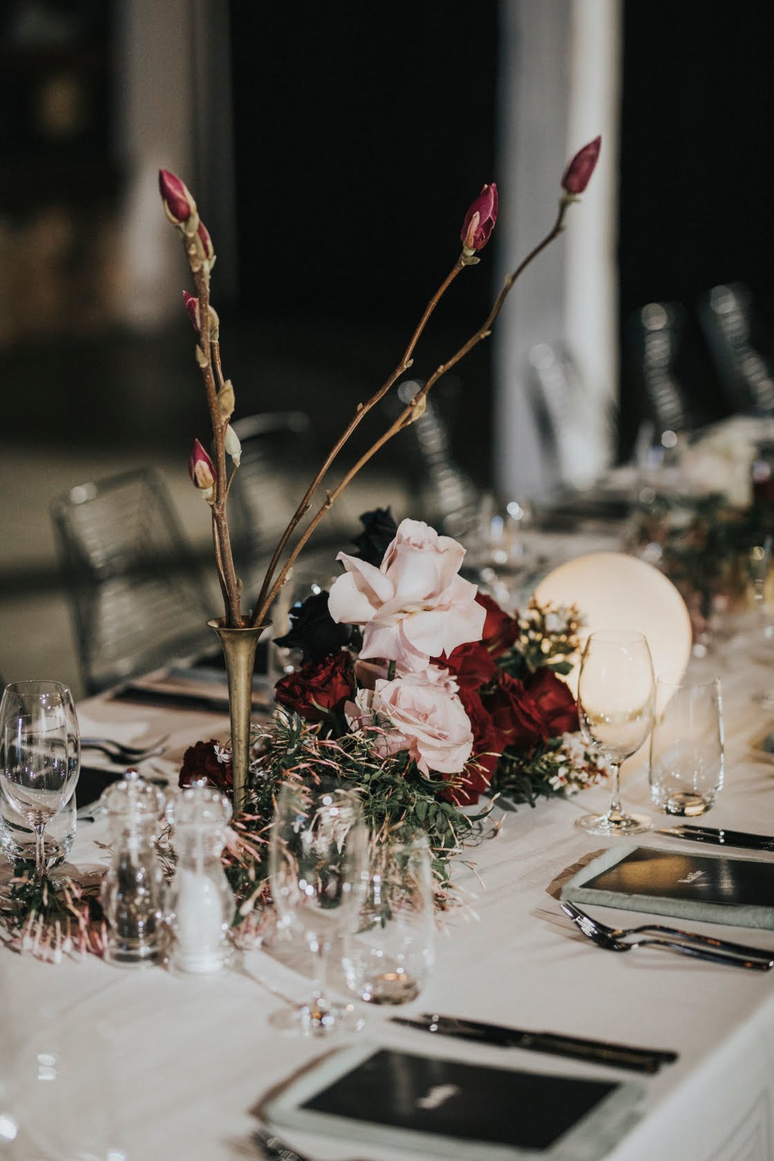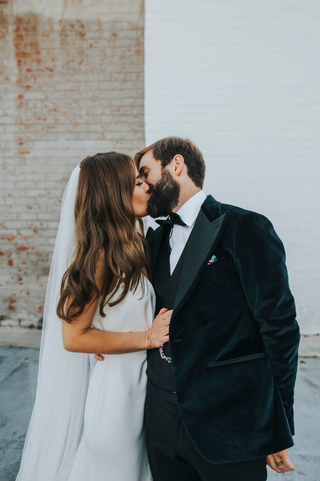 THE VIBE “We wanted the ceremony and wedding to feel wintery, intimate and moody. We both love to entertain and frequently have dinners with friends and family at home that go well into the night. We essentially wanted it to be the biggest dinner party we had ever hosted with everyone we love. We followed few conventions and didn’t want too much pomp and ceremony.”