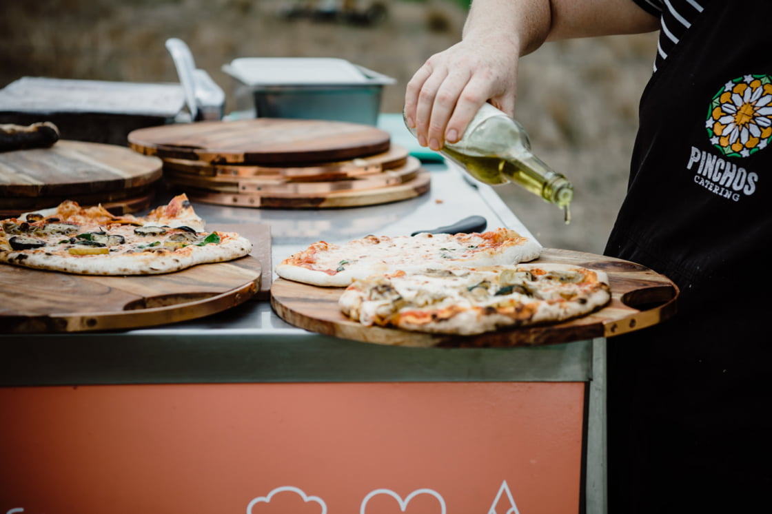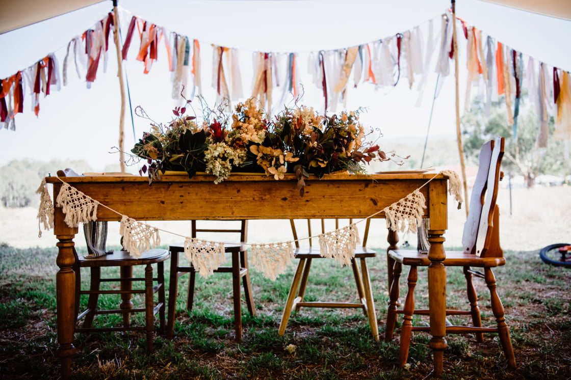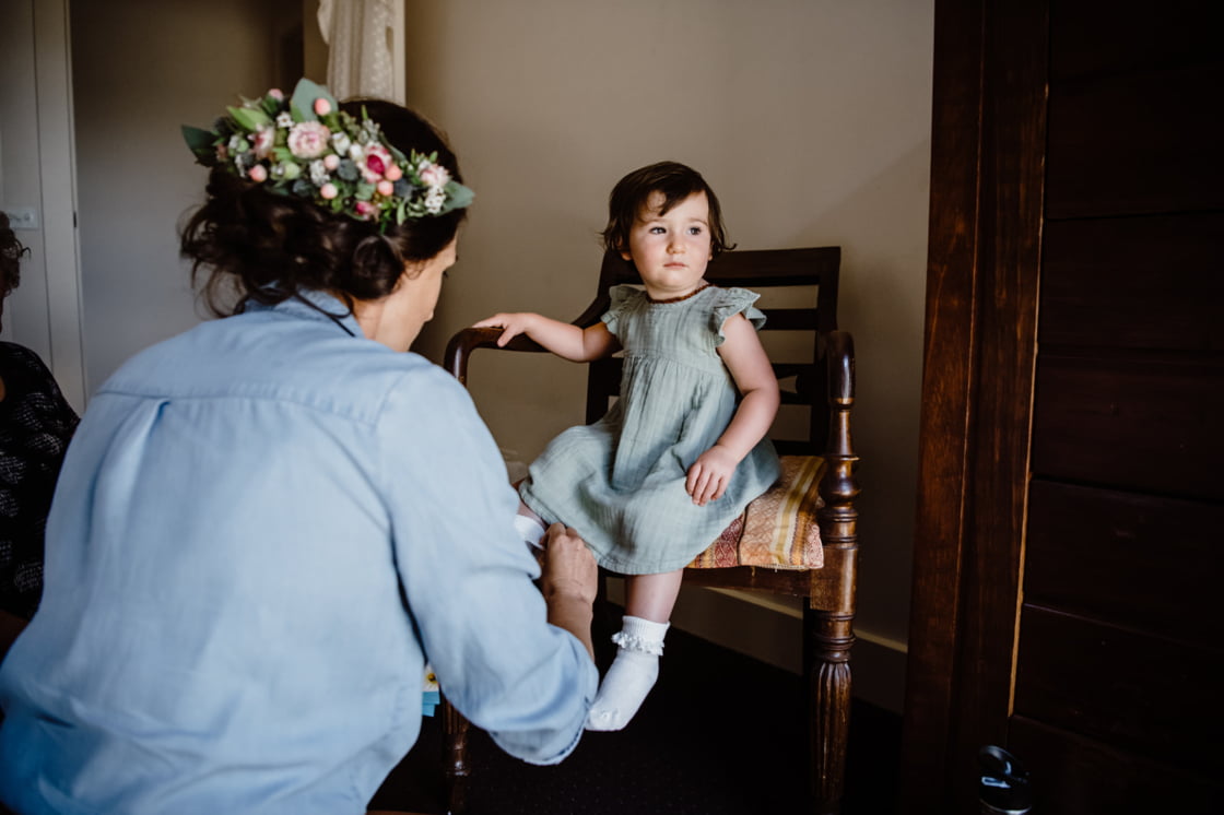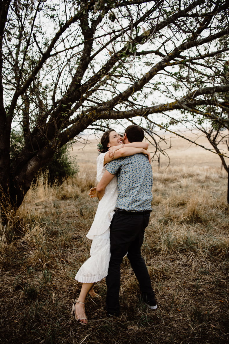 STANDOUT VENDORS “Most importantly Tamsin and Matt, we completely put them on the spot asking to have a wedding at their place and they were up for the challenge. From extra watering, planting, weeding, mowing to putting in new gate and fences and allowing us to build a bike track, they were so accommodating and we cannot thank them enough for their generosity. Rachel Emily, our photographer, was amazing in taking the documentary style photos completely incognito at our request. She was gentle and nurturing, and her contact leading up to the wedding and after the wedding was reassuring and made us feel really special. Selena from Flowers Naturally, a good friend, usually exclusively does funeral arrangements, however, couldn’t say no to our wedding. I gave her some very loose direction and ideas, nothing definitive and she was able to take that and create the most gorgeous arrangements, including Maeve’s flower necklace (which she wouldn’t wear haha). Farrah and Andrea of Pinchos of course! We had a pizza wedding and they took care of every single thing from getting the wood-fired pizza oven in, to our own special antipasto plate post-ceremony knowing that we’d be famished.”
