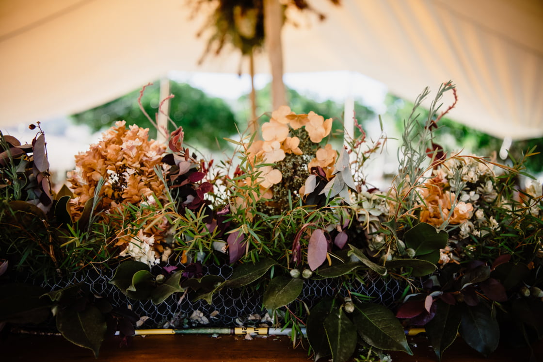FAVOURITE DETAILS “I loved the arbour Washo banged together before the wedding which was made from wood foraged on the property. I loved it so much because it was a representation of him to me. He is resourceful, creative and never lets me down.”