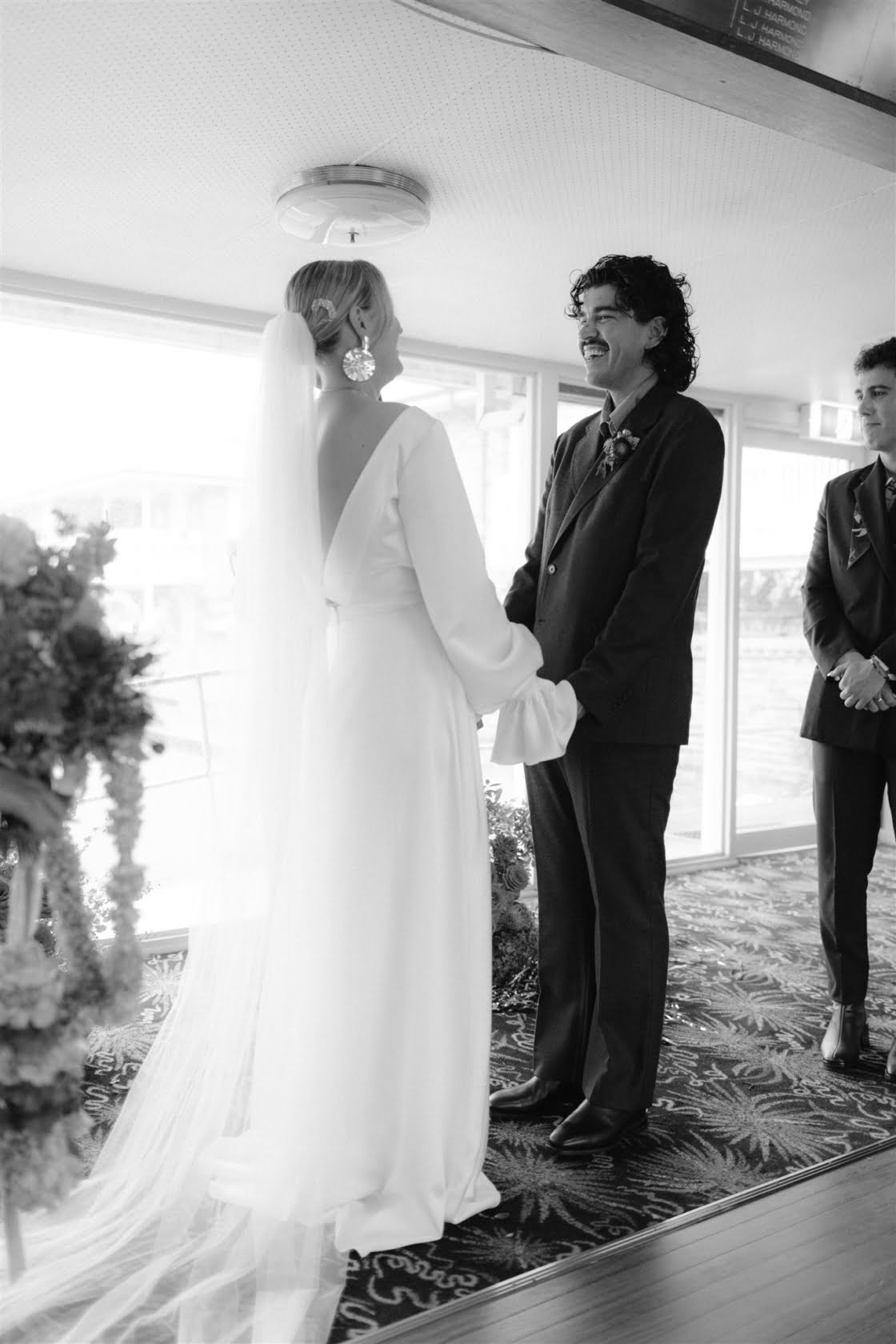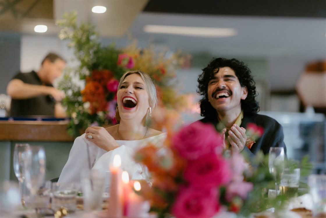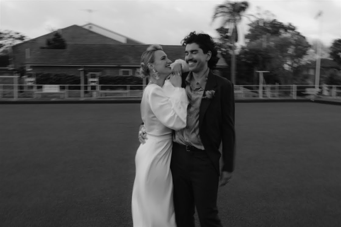THE VENUE “We had the idea to get married at the South Cronulla Bowling Club and so we popped in for a drink one afternoon and it just felt perfect. We love the whole vibe and the retro movie-theatre-esque carpet is really something. Kalim’s family played bowls for the club many years ago and their names are embossed on the championship board on the wall, which made it quite special.”