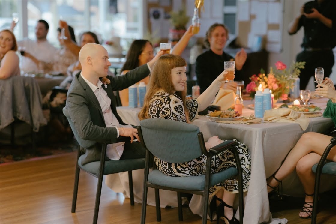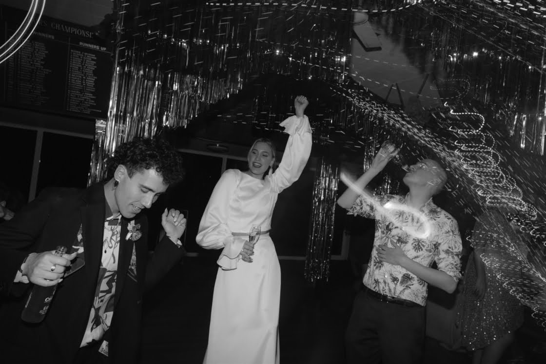 THE VIBE “We were inspired by the music we love and the vibe of the beautiful bowling club. We went to The Marmalade Sky with a vision of a disco dance hall wedding and they brought the goods. Our vendors accoutred the bowling club with disco balls, foil garlands, fairy lights and a Balinese feast, giving us the best disco-bowlo-banquet wedding that was truly unique to us.”