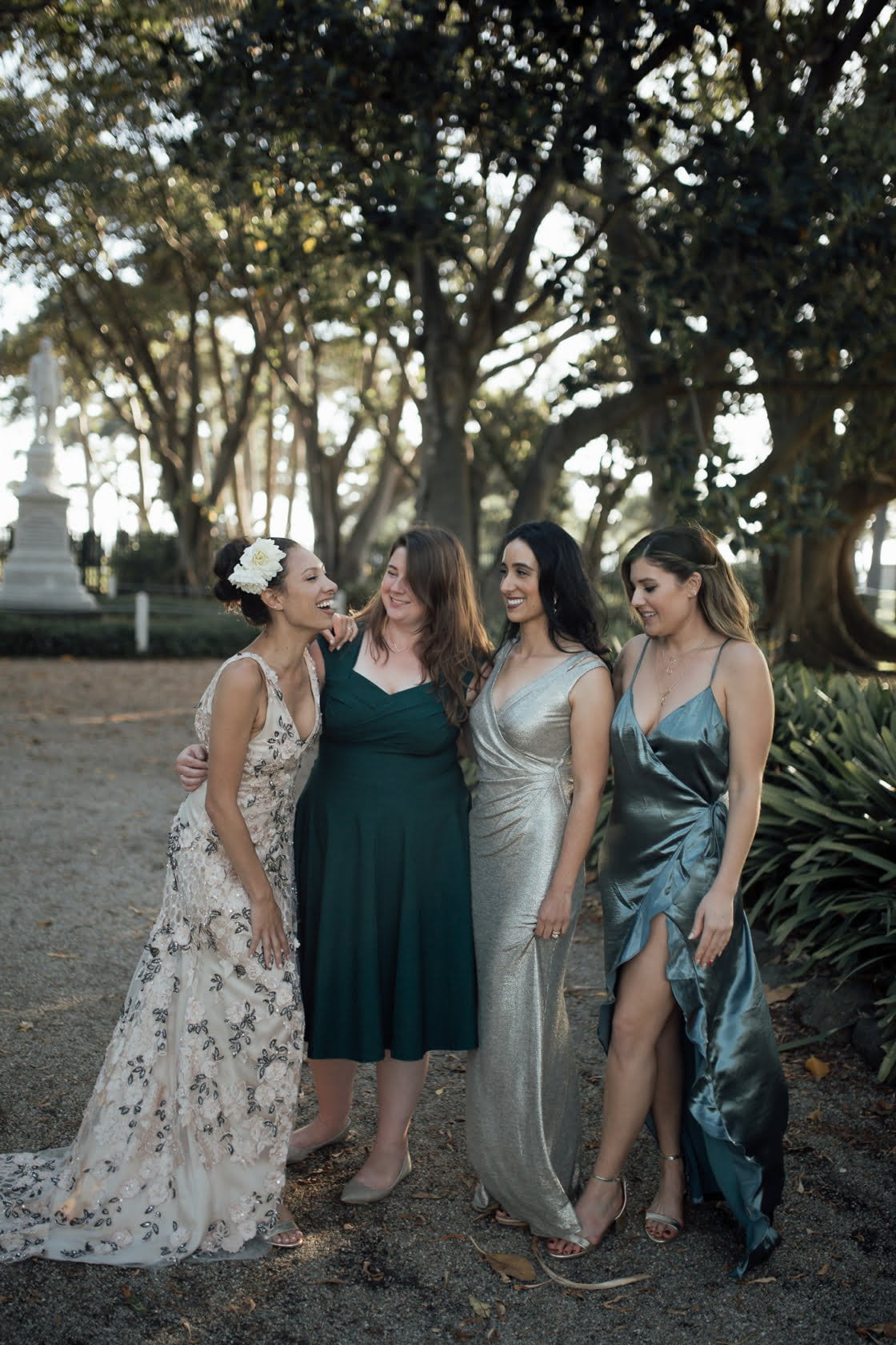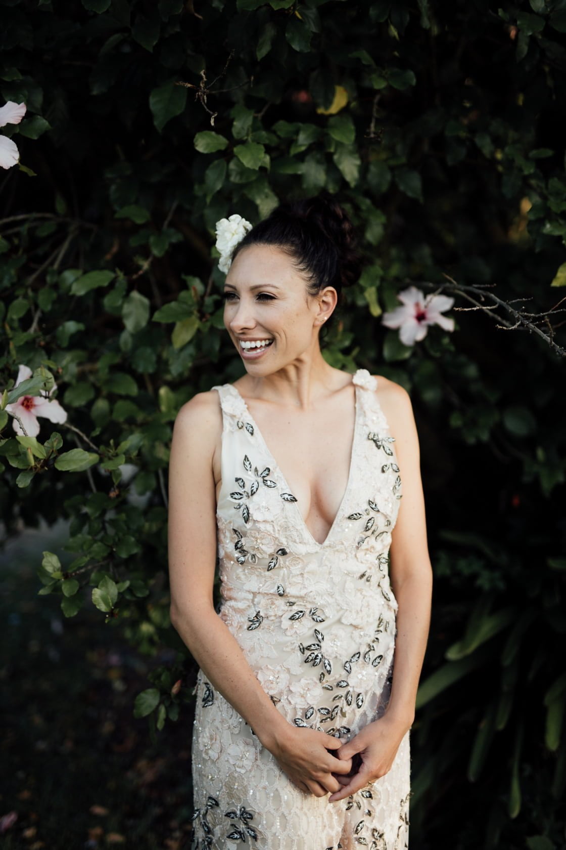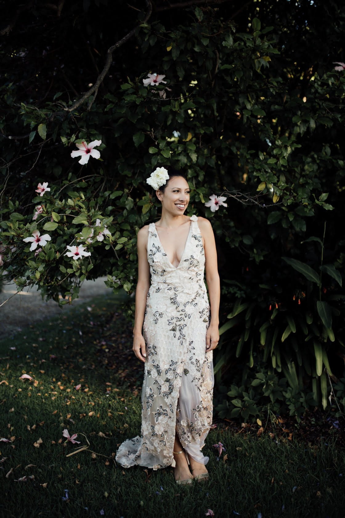 THE DRESS “I tried on a million dresses (in LA and Melbourne) but found this gorgeous fabric from Mood Designer Fabrics and was able to use my industry knowledge and contacts to make my wedding dress…just! Literally, the damn thing was still being sewn at 5pm on December 22nd and my flight was at 10pm. One of my co-workers met me in a parking lot near the airport with it. I had no idea how much of it was finished or if it would even fit when I boarded the plane to Australia.”