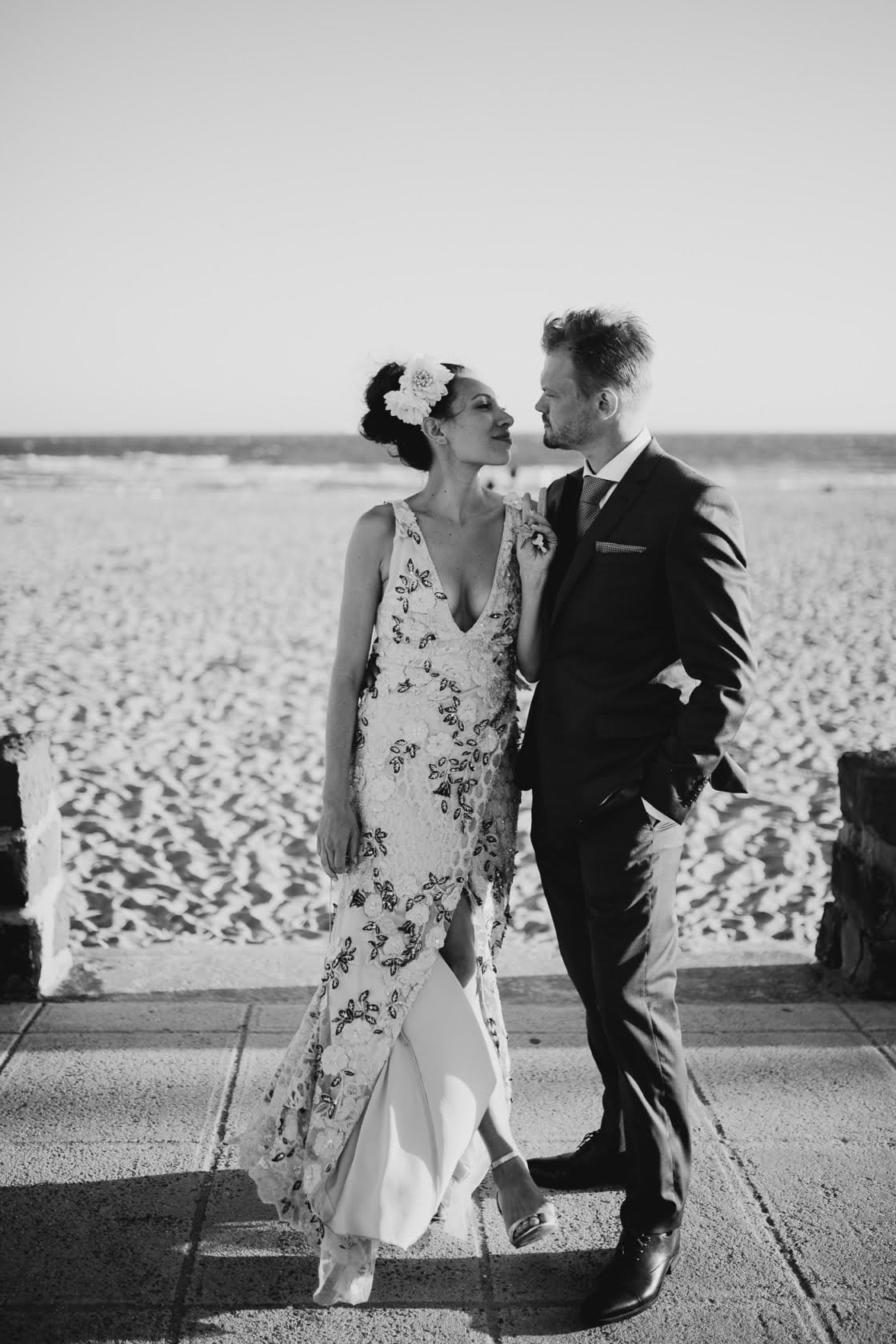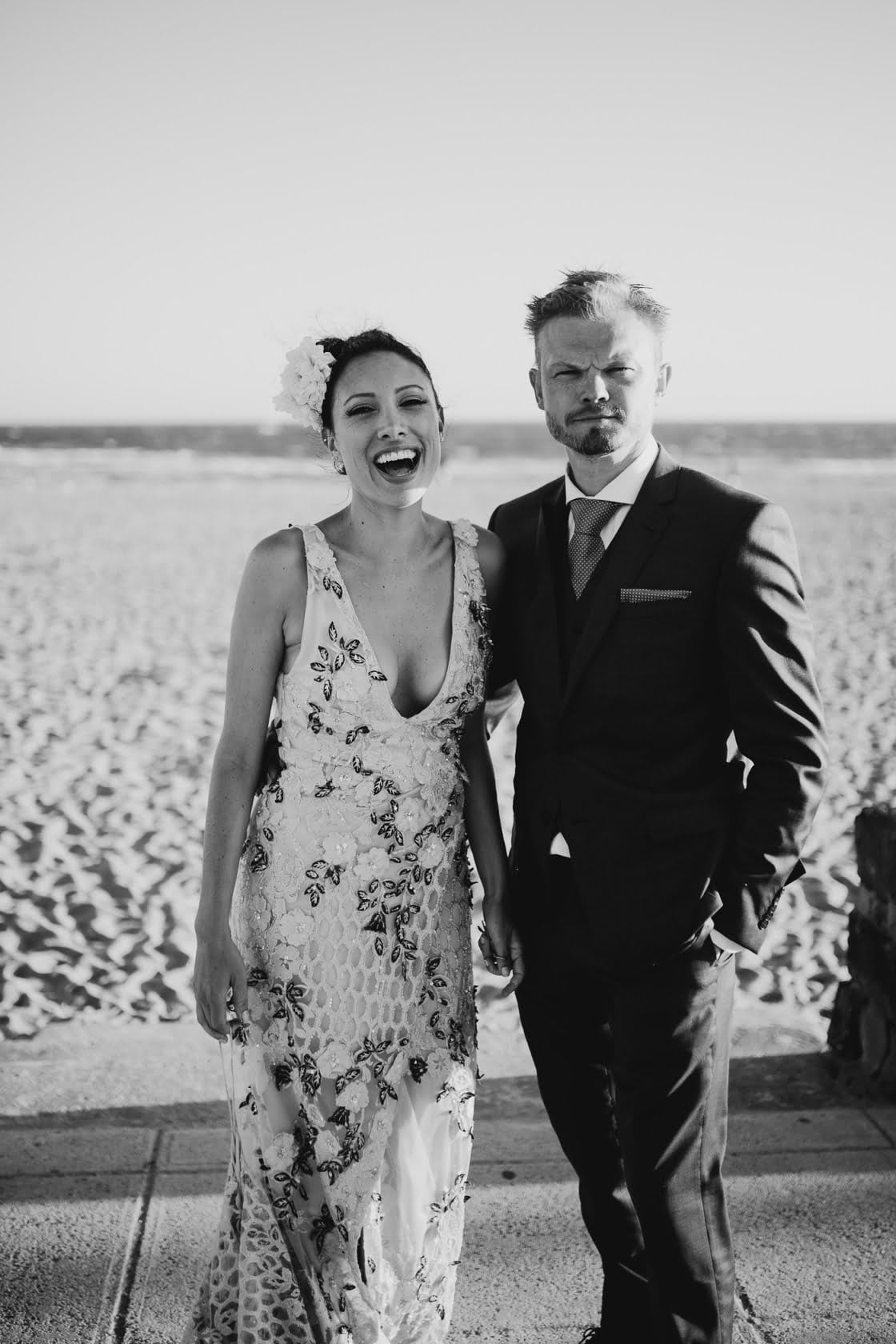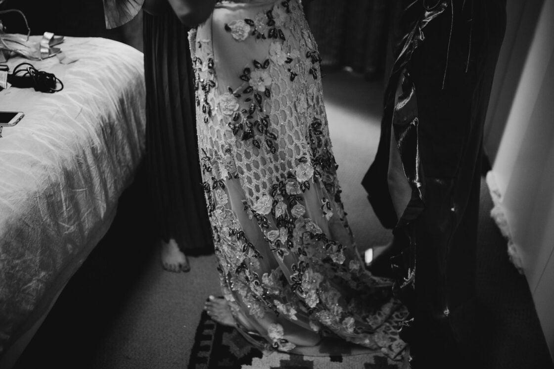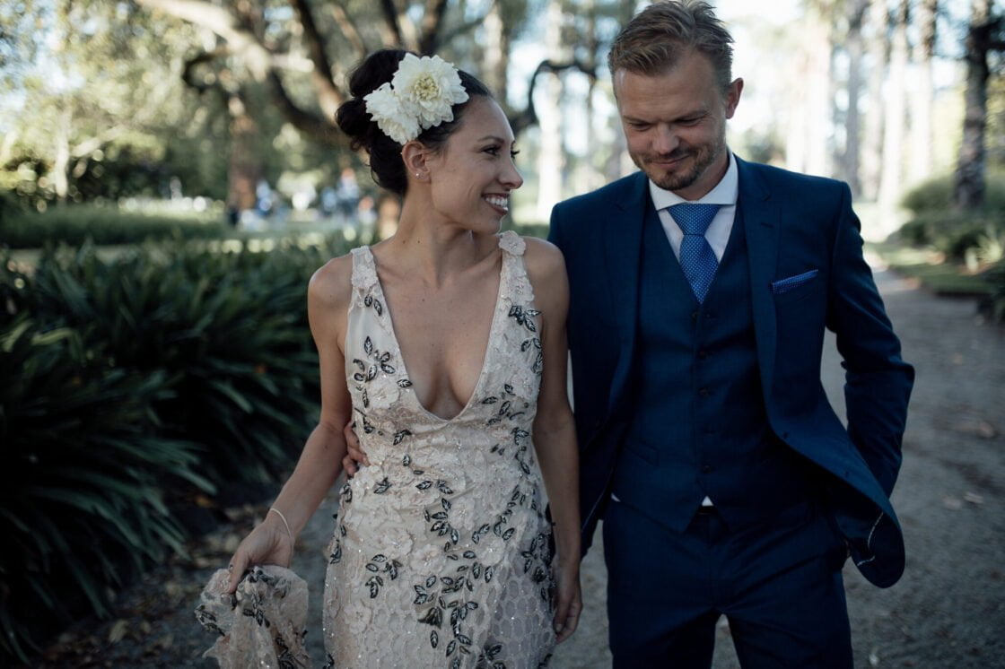THE DRESS “I tried on a million dresses (in LA and Melbourne) but found this gorgeous fabric from Mood Designer Fabrics and was able to use my industry knowledge and contacts to make my wedding dress…just! Literally, the damn thing was still being sewn at 5pm on December 22nd and my flight was at 10pm. One of my co-workers met me in a parking lot near the airport with it. I had no idea how much of it was finished or if it would even fit when I boarded the plane to Australia.”