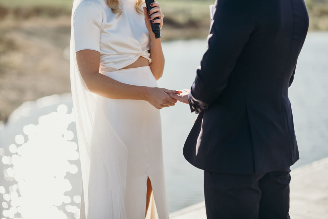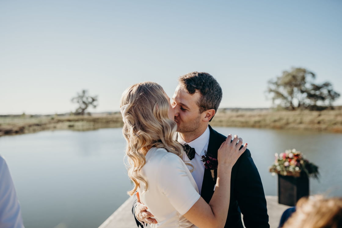 DIY “Lots! My father made the pier we got married on and Max and I helped to pour the concrete one weekend. We also made our bridal table and the stage for the band. The seats for the ceremony were timber logs milled by Dad.”