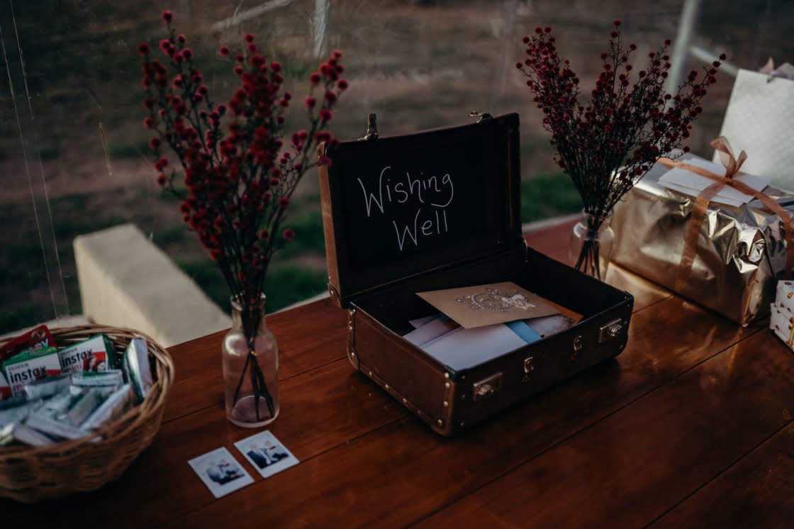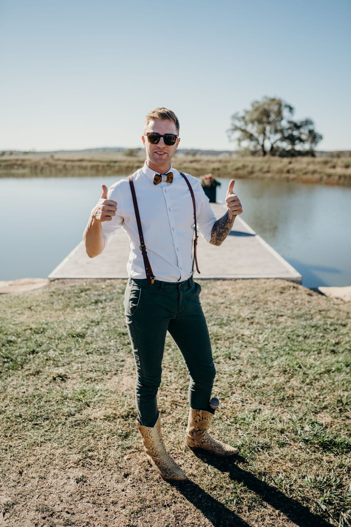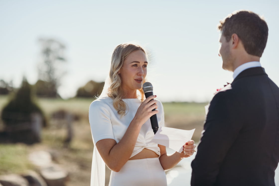 CONTRIBUTING VENDORS Photographer Redmoose On The Day Coordinator Making it Simple Events Stationery Paperlust, Vistaprint Venue Private Property Catering & Cake Little Coco’s Hire Items Gold Event Hire Lighting Hire Mr and Mrs Hill Entertainment Megan Core, Uptown Celebrant Holymatrimonty Rings Meg Maskell Fine Jewellery, Ruusk, Grew & Co BRIDE Dress & Veil Prea James Bridal Loungewear The Iconic Shoes Valentino via Mytheresa Accessories A.B. Ellie Hair The Hair and Beauty Basement Bridesmaid Dresses Bec & Bridge Bridesmaid Shoes Alias Mae GROOM Suit, Bow Tie and Cufflinks MJ Bale Shoes RM Williams Barber Soul Expression Barber
