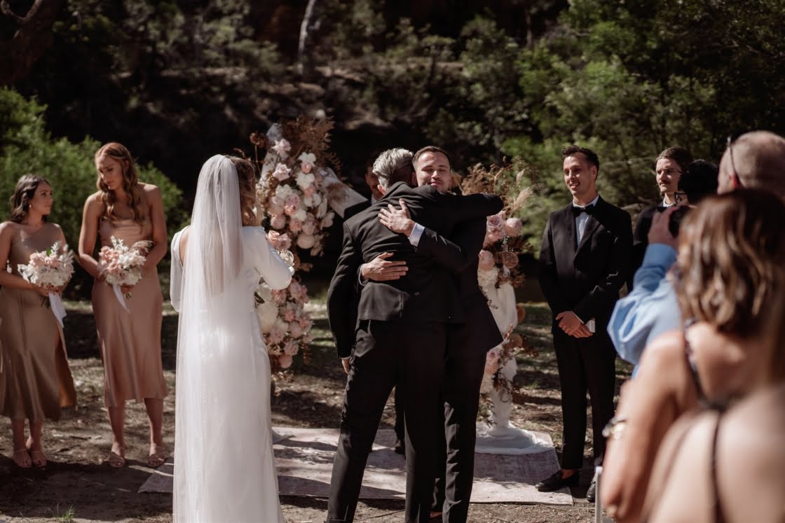 CONTRIBUTING VENDORS Photographer Kieran Moore Photography Cinematographer Benjamin Rainford Hire Items Lovestoned Styling Florist The Flower Posse Invitations & Place Cards The Paper Fox Menus Unmeasured Events via Etsy Printer Cliff Lewis Printing Ceremony & Reception Audley Dance Hall Cake Blissfully Bare Treats Entertainment & Sound Hire Christo Events Celebrant Timothy Biasetto (Pastor) THE BRIDE Bridal Gown Savannah Miller Bridal Boutique The Bridal Atelier Veil Rue De Seine Rings ToniMay Robes Spell (Bride), Le Rose (Bridesmaids) & Homebodii (Mother of the Bride) Shoes Grace Loves Lace Earrings Isabella May Jewellery Hair Sandra Natoli Makeup Stacey Tsardoulias Bridesmaid Dresses Bec + Bridge & Sheike Bridesmaid Shoes Billini Bridesmaid Gifts Go-To (Skincare Pack) & Robes THE GROOM Suit & Bow Tie Calibre Shirt Hugo Boss Shoes Brando Grooming ManCave Barber Shop Groomsmen Suits The Iconic