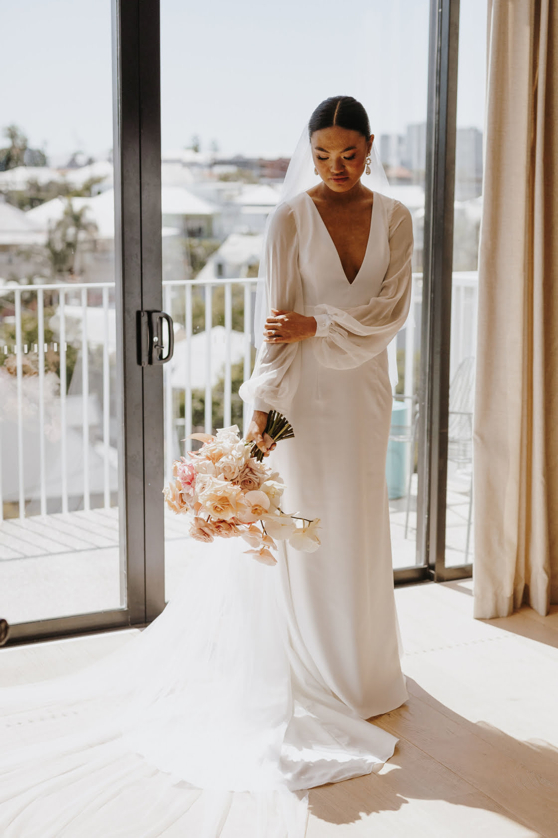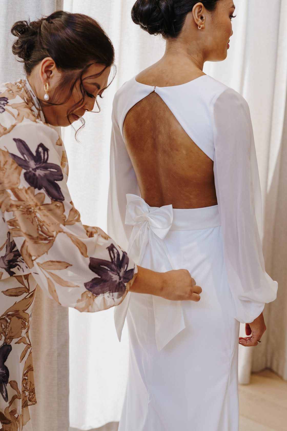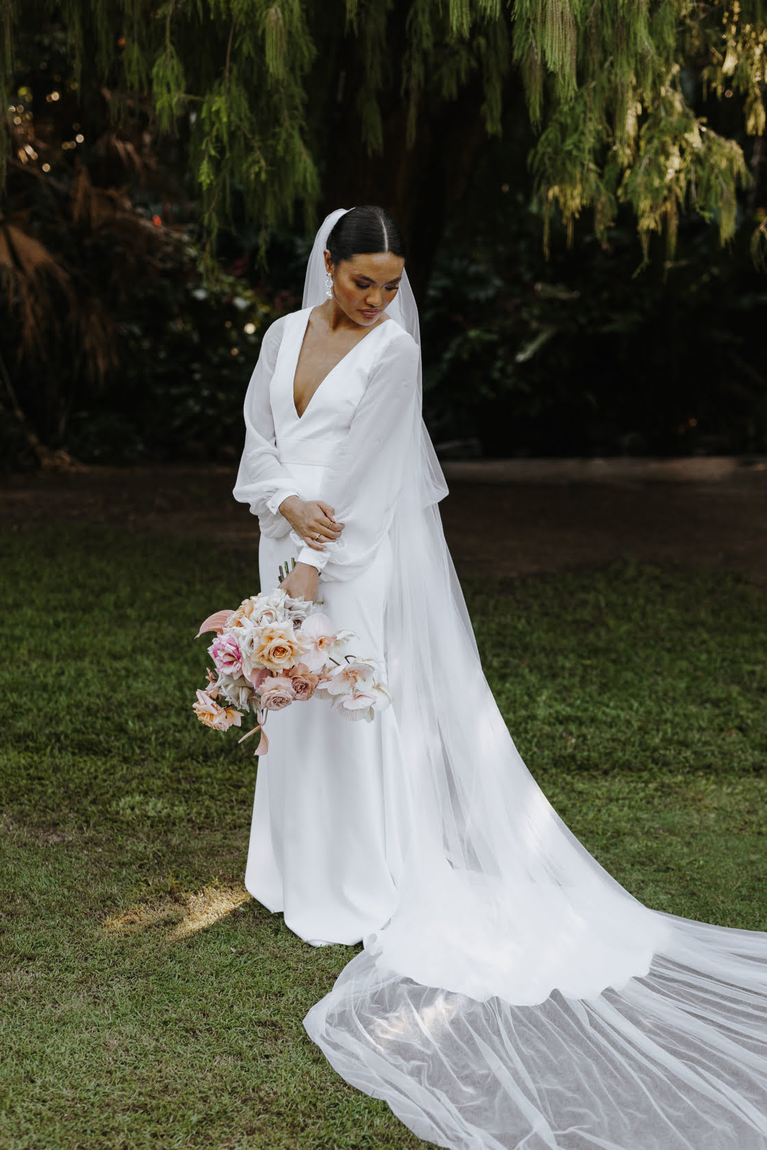 THE DRESS “My dress is designed by & For Love and I bought it from Bloom in Newstead! For a while I was convinced that I was just going to try dresses on to see what I liked, then get it made so I could save money. I knew that I wanted a long, sheer sleeved dress so as soon as I put on the Samara gown I couldn’t imagine wearing anything else. Trying it on at Bloom was probably the first time that it kicked in for me that I was going to be a bride. That was really special.”