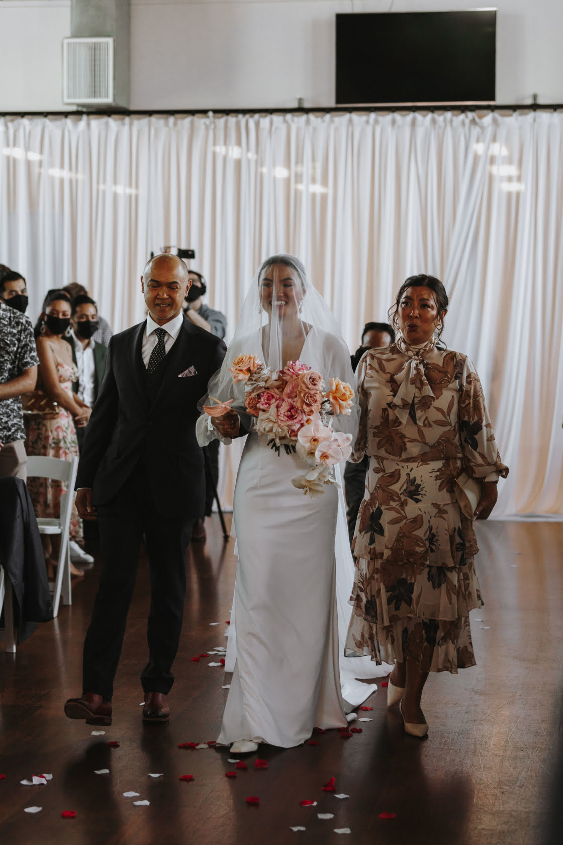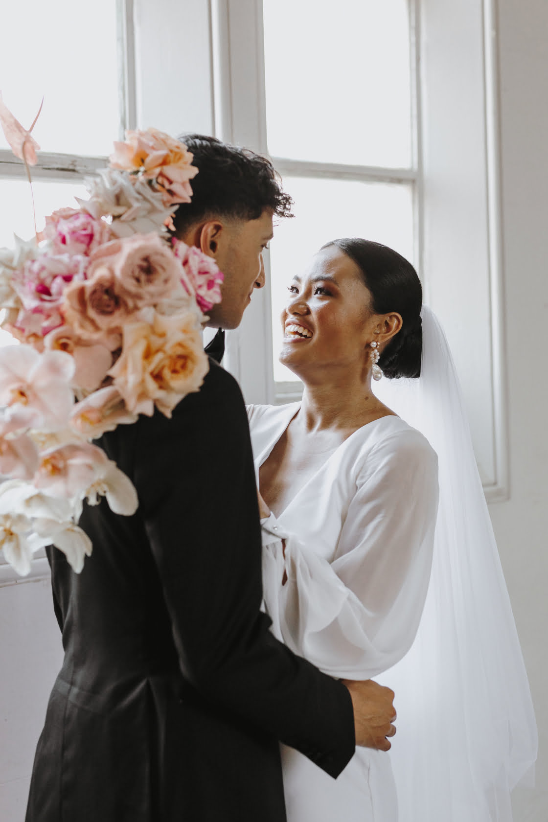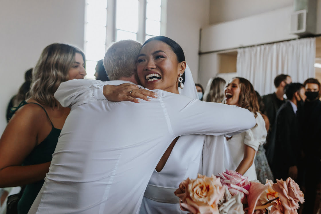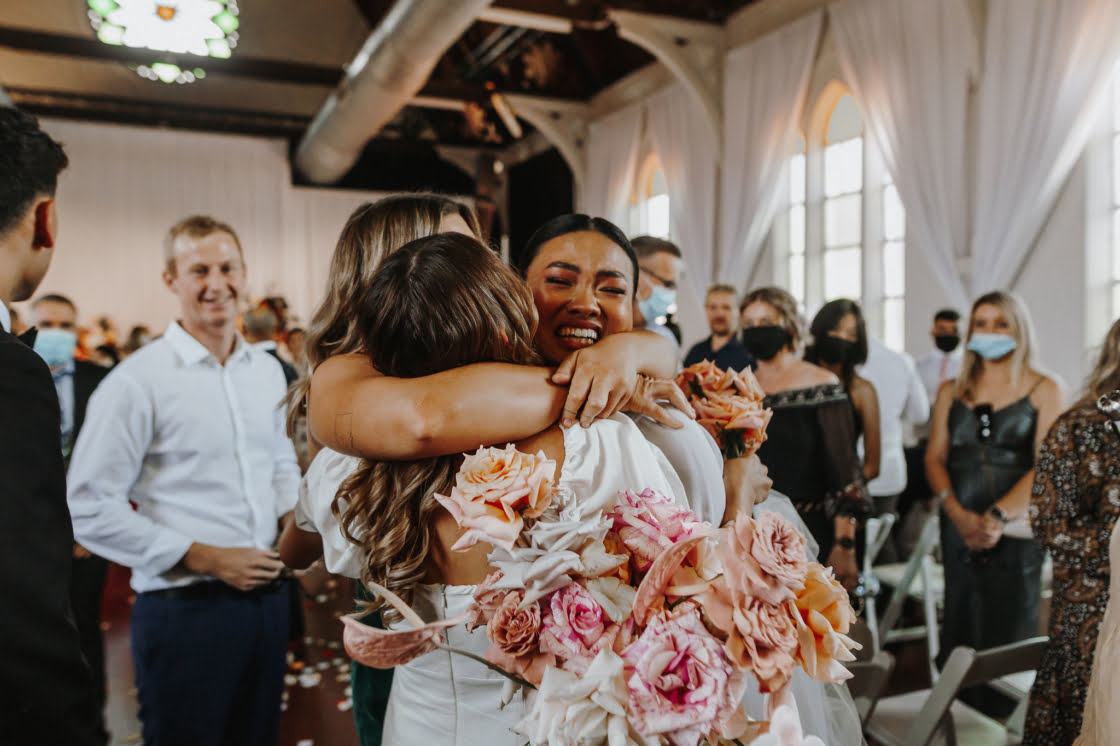 Bianca and Noa are a treat for the eyeballs, people. They have been an item for “around three and a half years” and got engaged on the cusp of COVID in Canada no less. They had to postpone the wedding once due to the pandemic, but “were really glad we had organised a professional live streaming crew to beam the entire ceremony and reception to our loved ones interstate and overseas,” says Bianca. George Bowden Photography caught it all on camera and the incredible Mrs Gibbons Flowers did the blooms. Scroll down for all…