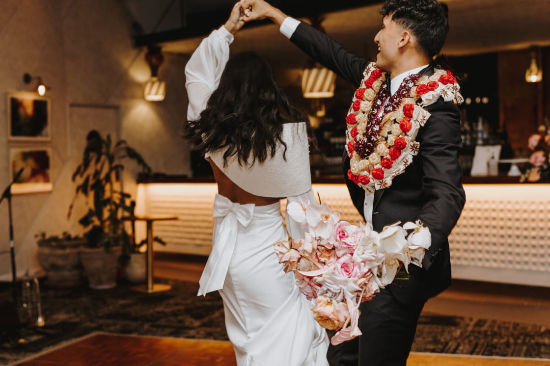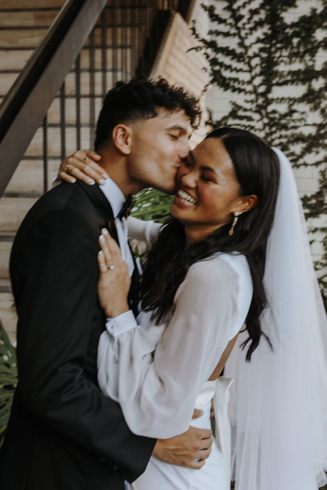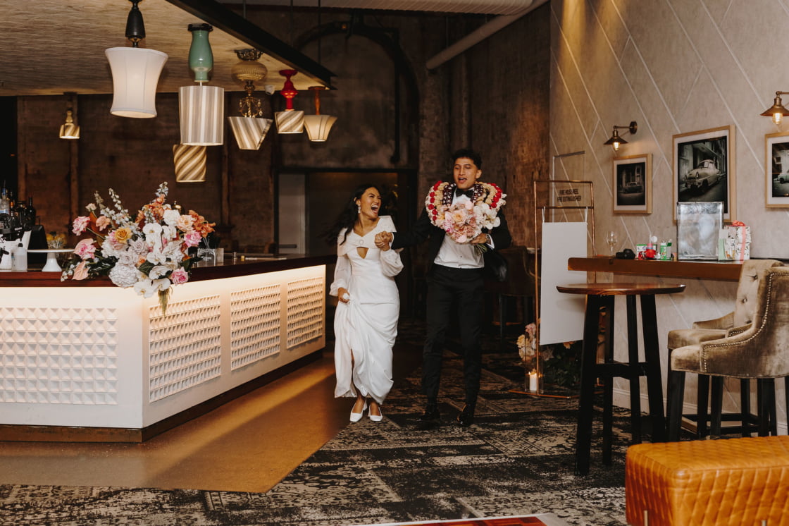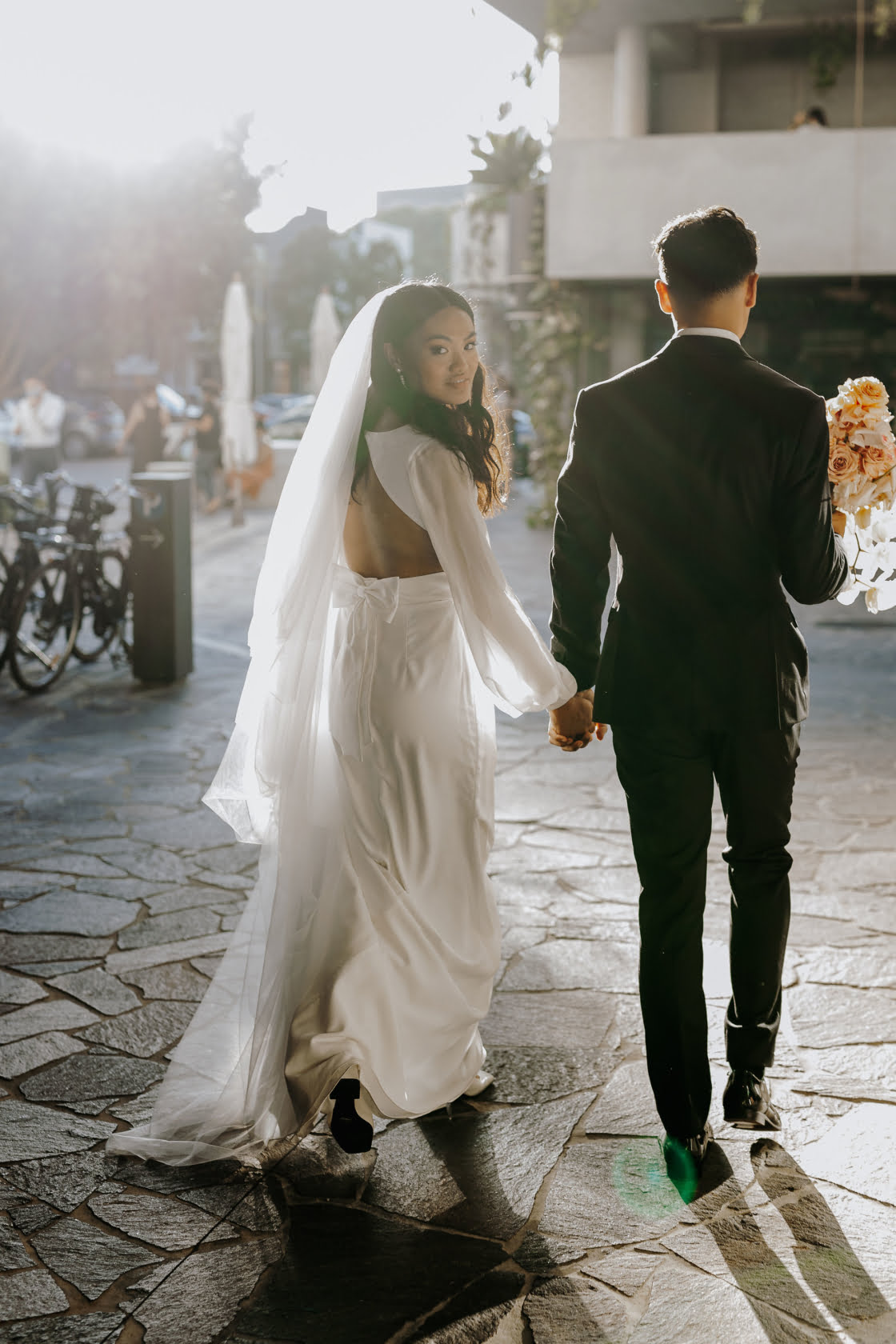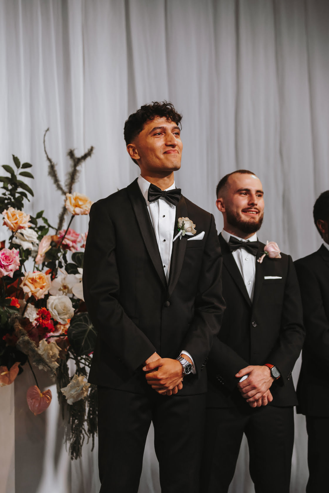 Bianca and Noa are a treat for the eyeballs, people. They have been an item for “around three and a half years” and got engaged on the cusp of COVID in Canada no less. They had to postpone the wedding once due to the pandemic, but “were really glad we had organised a professional live streaming crew to beam the entire ceremony and reception to our loved ones interstate and overseas,” says Bianca. George Bowden Photography caught it all on camera and the incredible Mrs Gibbons Flowers did the blooms. Scroll down for all…