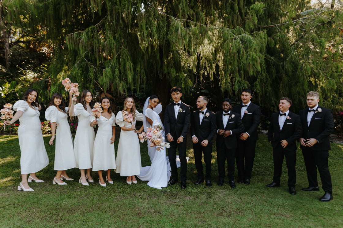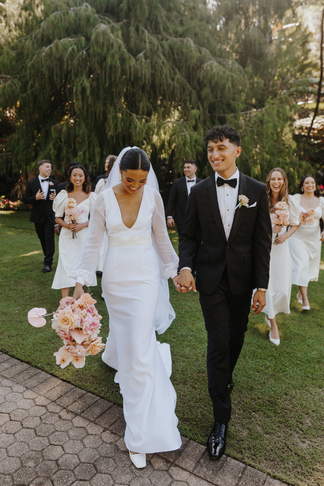 CONTRIBUTING VENDORS Photographer George Bowden Photography Cinematographer Vince Fuentes Stylist & Signage Main Event Weddings Florist Mrs Gibbons Flowers Stationery DIY (Bride) Printer Officeworks Ceremony Weddings At The Church Reception & Catering The Warehouse Cake Family Entertainment Samuel Ayling Music & Evan Celebrant Sloane Simpson (Friend) Engagement Ring Argyle Jewellers (Custom) Wedding Bands Michael Hill Transport Sting Ray Mini Bus Live Stream Wedding Live Stream THE BRIDE Bridal Gown & For Love Bridal Boutique Bloom Veil JJ’s House Robes Bride Tribes Shoes Charles & Keith Accessories Enesea (Earrings) Hair Sheree Nield (Friend) Makeup Olivia Jane Bridesmaid Dresses Zara Bridesmaid Shoes Betts Bridesmaid Gifts Oroton (Clutch & Robes) THE GROOM Suit Van Heusen Shirt & Bow Tie Michael Innis Menswear Cufflinks Boss Shoes ASOS Watch Citizen Grooming X The Barber Groomsmen Suits Michael Innis Menswear Groomsmen Gifts David Jones (Flasks)