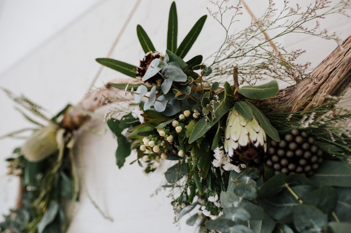 DIY “I (Bridget), really wanted confetti, but I didn’t want it to have a negative impact on the environment. So we started hand punching gum leaves with a little beach punch about six months before the wedding.”