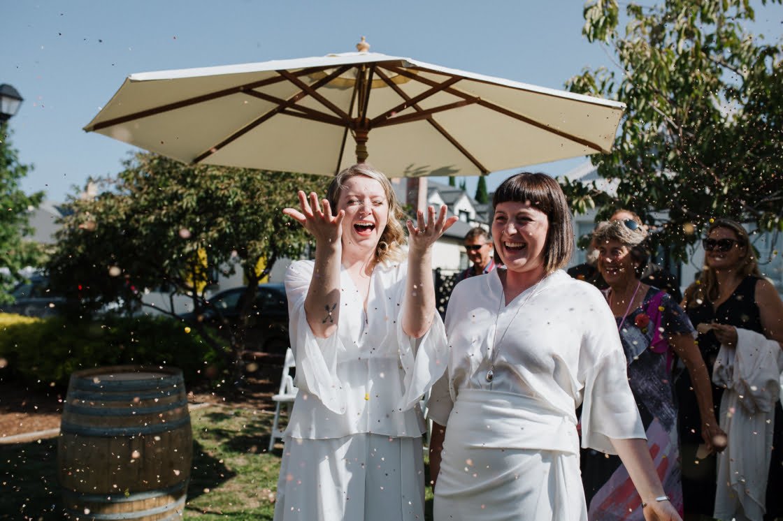 CONTRIBUTING VENDORS Photographer Nina Hamilton Florist Lisa Kingston Flowers Ceremony & Reception Battery Point Community Catering Sabre. Donuts Lady Hester Entertainment Lasts & JD Celebrant Cinta Celebrate Love Rings Courtney Jackson Jewellery Event Hire Salters Hire (Crockery, cutlery, tables, chairs, glasses, wine barrels & outdoor umbrellas) THE BRIDE (Bridget) Top Mossimo via MYER Pants Tussah via The Iconic Shoes Gorman Hair Amanda Joy Hair Stylist Makeup Brides by Kate THE BRIDE (Amber) Top Seed Skirt Bianca Spender Shoes Gorman Accessories Toyah Perry (Earrings) Hair Amanda Joy Hair Stylist Makeup Brides by Kate