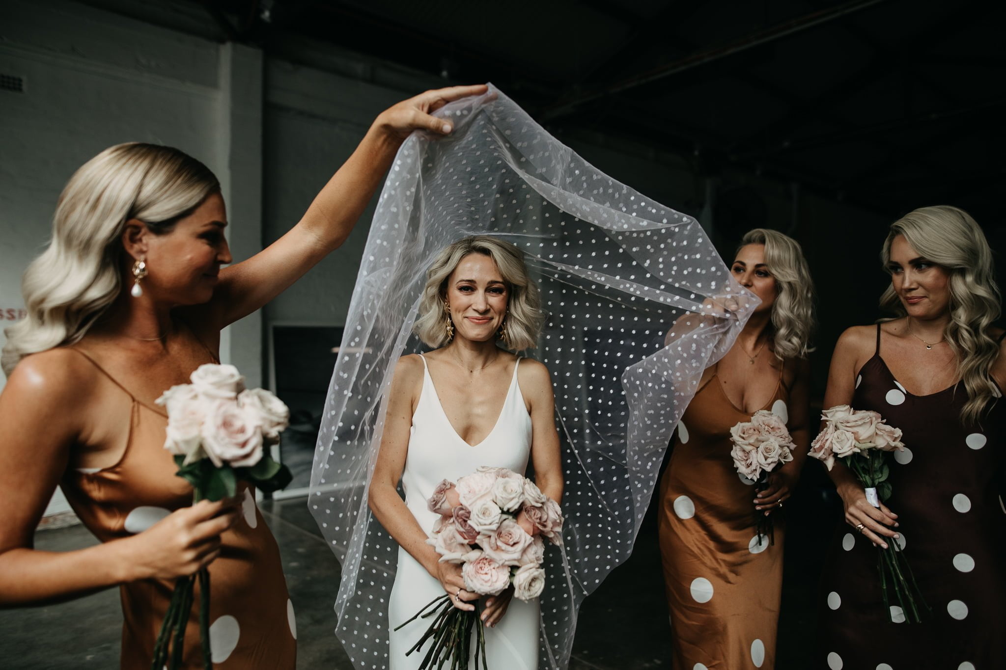 FAVE DETAILS “Our invites were very special to us, as our talented friends KS designs designed them. It was lovely to have something so personal to send out. Also my polka dot veil from Lola Varma. I fell in love with it, then found the perfect bridesmaid dresses to match the polka dots and loved those dresses on my beautiful besties. Our DJ, Mitch, was incredible. We left the music completely up to him and he knocked out beat after beat that made it impossible to leave the dance floor!”