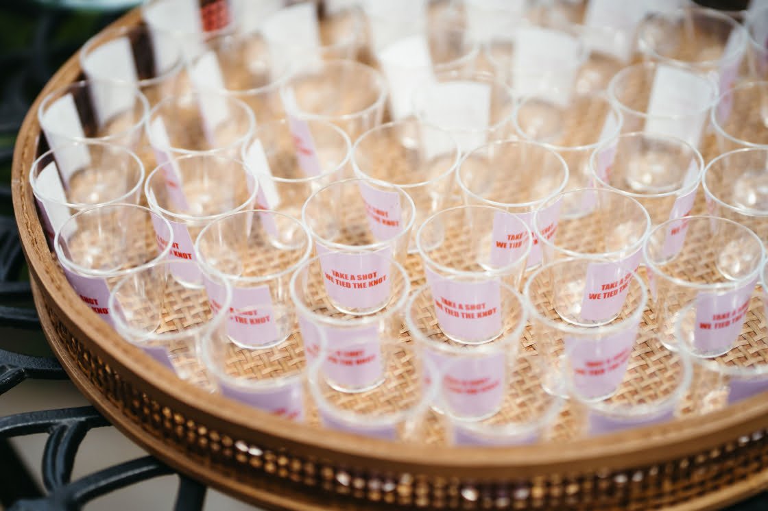 DIY “Haha, unfortunately, yes. Although I did enjoy it and I’m glad I did it in the end, it was a HUGE effort. I took on the task of hand-dying 130 napkins, twice as I got the wrong colour the first time… I also went thrift shopping to find all our table vases, which I then painted white to bring continuity across the eclectic style of the vases. “