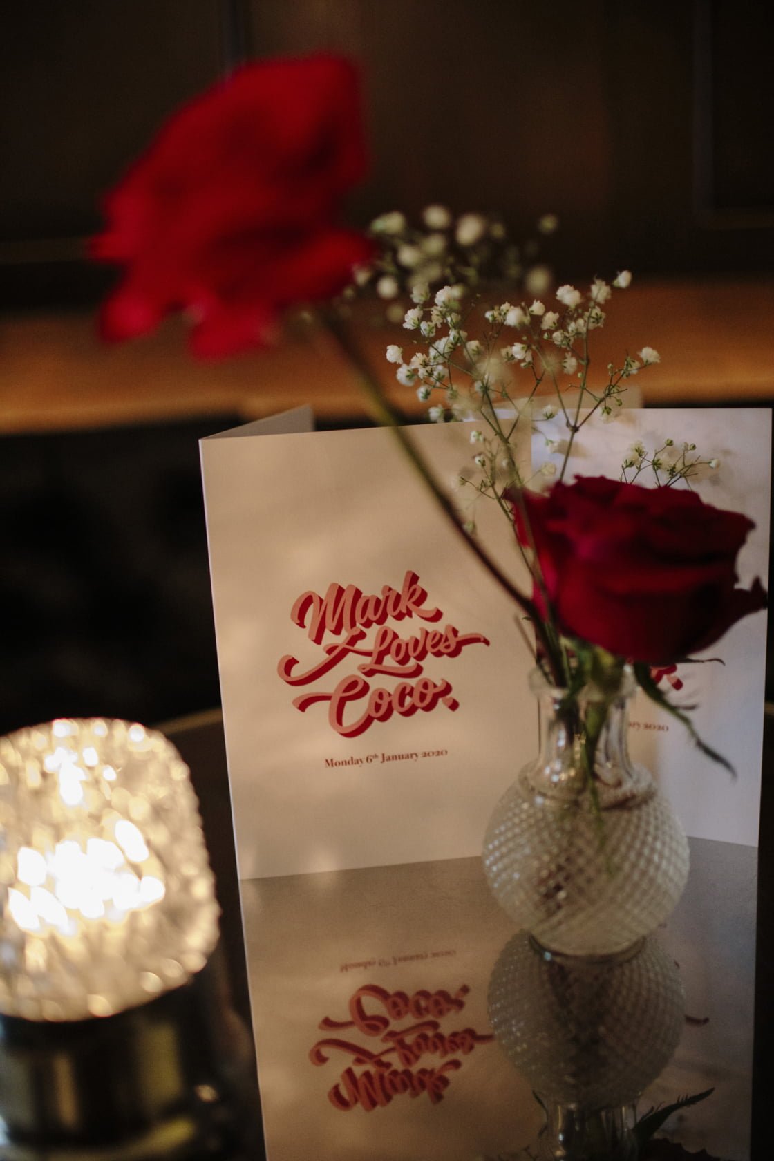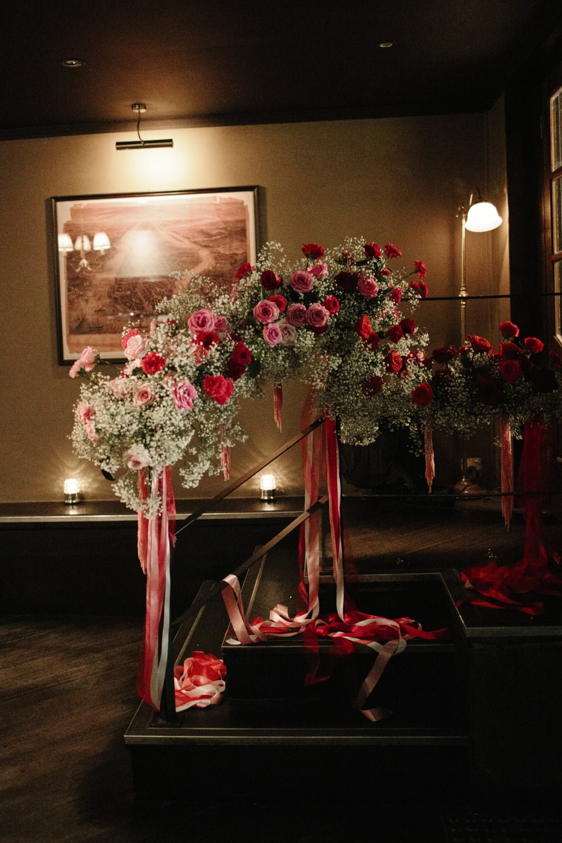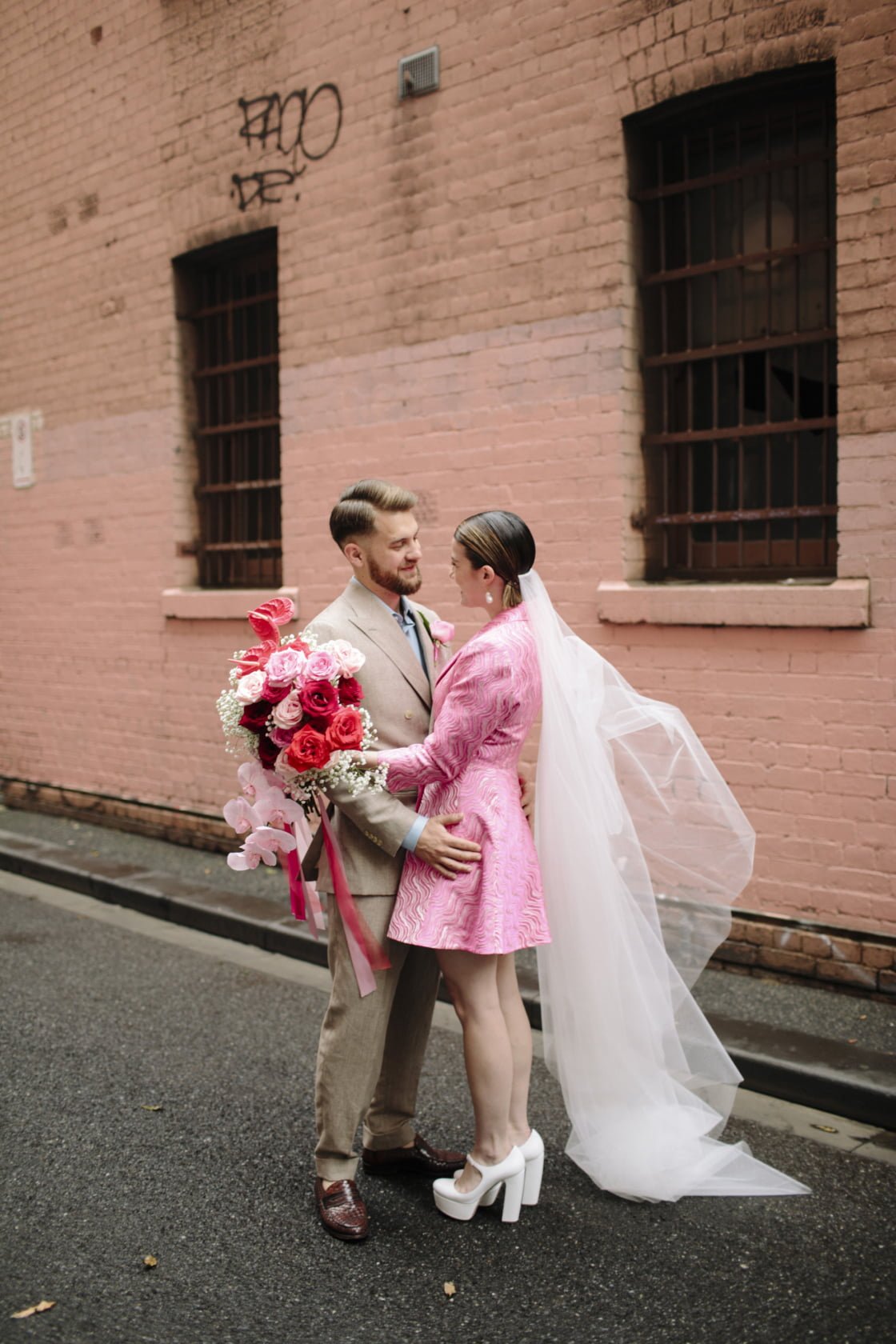 FAVOURITE DETAILS… “The cake from Torte by Mirjana was next-level. Guests still tell us it was the best wedding cake they’ve ever had. It looked sensational and tasted amazing. Ross, from Bloom Boy blew our minds when it came to flowers. Our first inkling of how incredible they would be was my bouquet and Mark’s boutonniere, but walking into the Everleigh was another experience completely. The installation was so joyful and perfectly complimented all of the other elements. Ross embraced our red and pink colour clashing theme wholeheartedly and made the day so magical. The “Mark loves Coco” hand-painted, mirror signage from Mikey Ting was a huge highlight of the day and was commented on by all of our guests.”