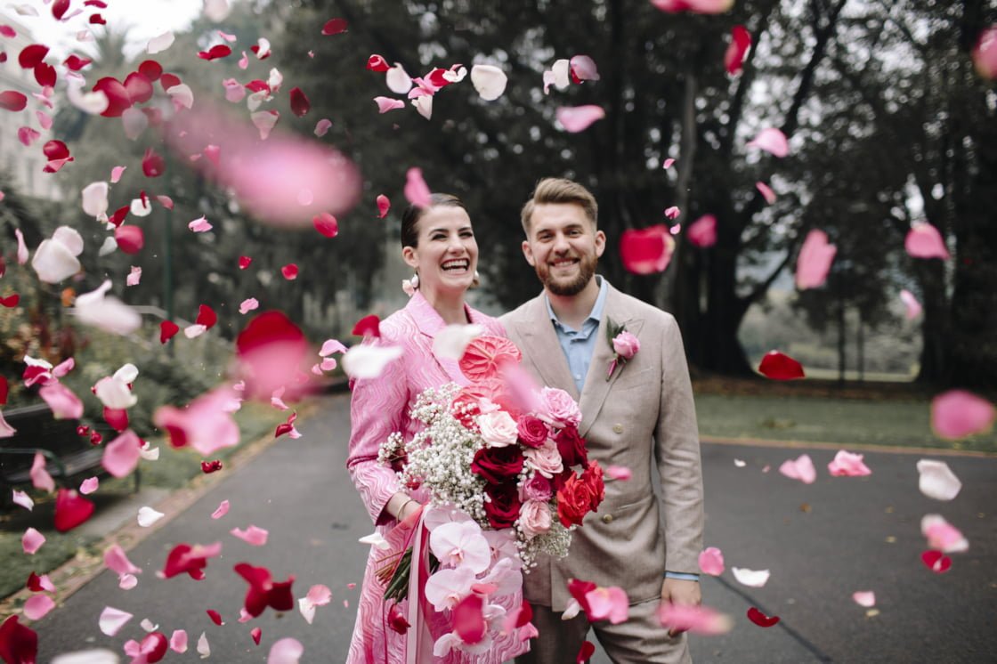Both in hospitality, this self-confessed, “fun-loving” couple admit their love for their industry, “food, wine and people,” influenced their big day in a big way. Then there’s the hot pink wedding dress and gold sequinned number the bride changed into for the reception and a solid list of some of our favourite vendors (say hi It’s Beautiful Here, Bloom Boy, Torte by Mirjana and Oscar Hunt Tailors) and it’s safe to say this was one heck of a wedding. Scroll down for all the pics and details to boot!